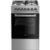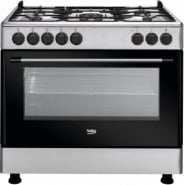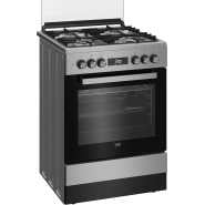Key Features: Beko Cooker 50x60cm | 3 Gas Burners + 1 Electric Hob | Electric Oven & Grill | Turnspit | Flame Failure Device | FSS53110GS. Silver No plug 3 Gas + 1 hotplate hob Flame failure device Push button ignition (hob) Shiny enamel pan support Static oven with 4 functions Turnspit Electric Grill Steam cleaning