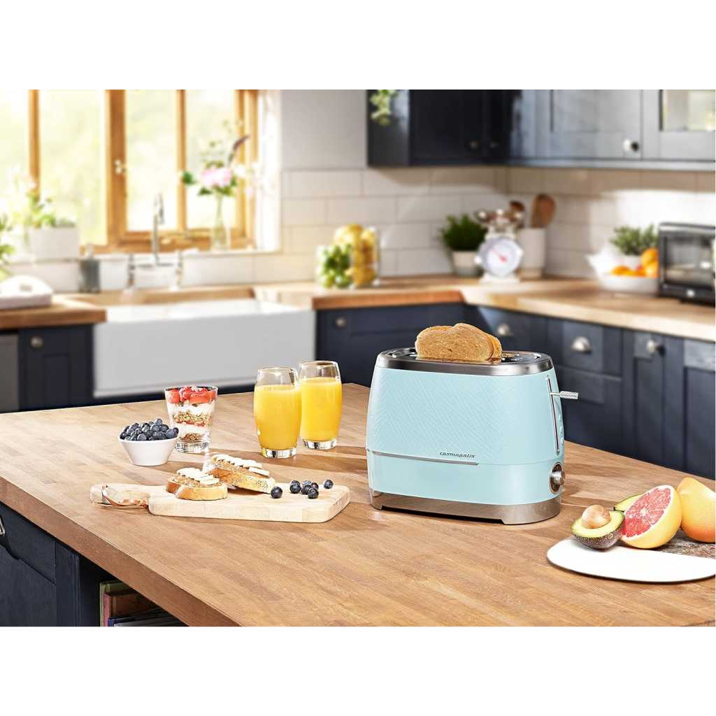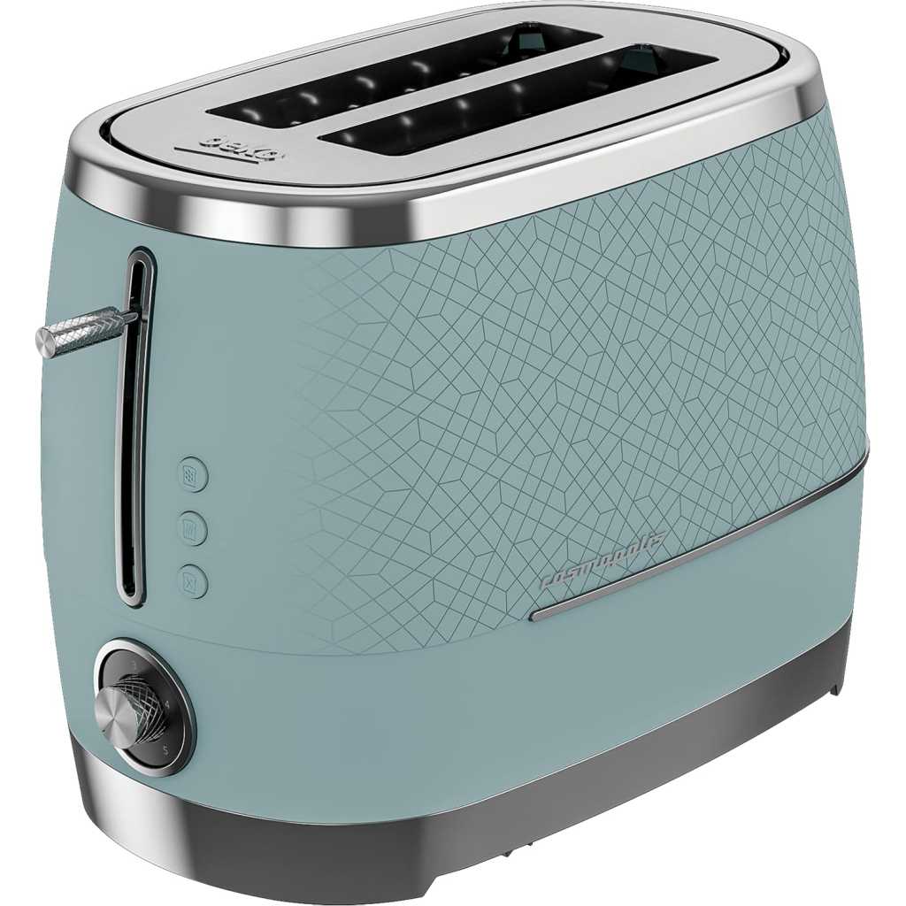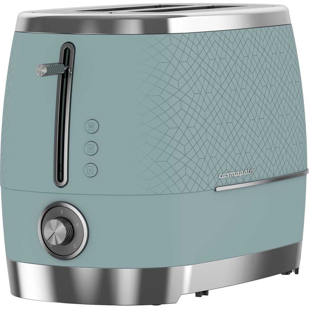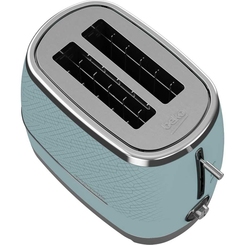 Beko Cosmopolis Toaster TAM8202T. GREAT FOR EXTRA THICK BREAD – From crumpets to burger buns and from bagels to thick slices of bread, the 2 extra wide slots ensures you enjoy a range of toasted bread just the way you like it. DEFROST, REHEAT & CANCEL – Take bread straight from the freezer and have fresh toast in minutes with the defrost setting. The cancel button lets you stop toasting when you choose and the reheat function is great for warming through without browning. TOAST BROWNING CONTROL – Ensure the browning of your toast is exactly how you like it with our fully adjustable dial control. You can alter the heat with precision to allow for thicker slices of toast, bagels or crumpets. DETACHABLE CRUMB TRAY – Say hello to crumb-free work surfaces, thanks to this model’s detachable crumb tray. Simple to remove and easy to clean, this feature helps to keep your kitchen worktops clean and tidy. So, you can enjoy freshly toasted bread slice after slice, without worrying about the mess. HIGH LIFT FUNCTION – Simply lift up the lever to easily remove your toast as soon as it is ready without the need to use any extra tools..CORD STORAGE- The cord can be neatly tucked away under the base of the toaster to keep your kitchen worktop tidy. Key Features: Beko Cosmopolis Toaster TAM8202T. Power: 900W Slice capacity: 2 High Lift function Detachable crumb tray 6 browning Levels Bun-warmer Attachment Defrost function Cancel Reheat Duck egg teal colour