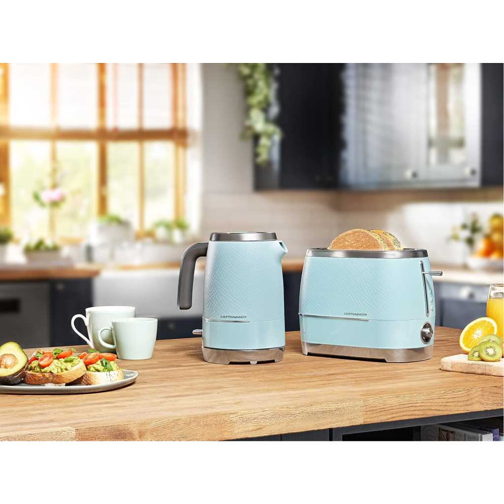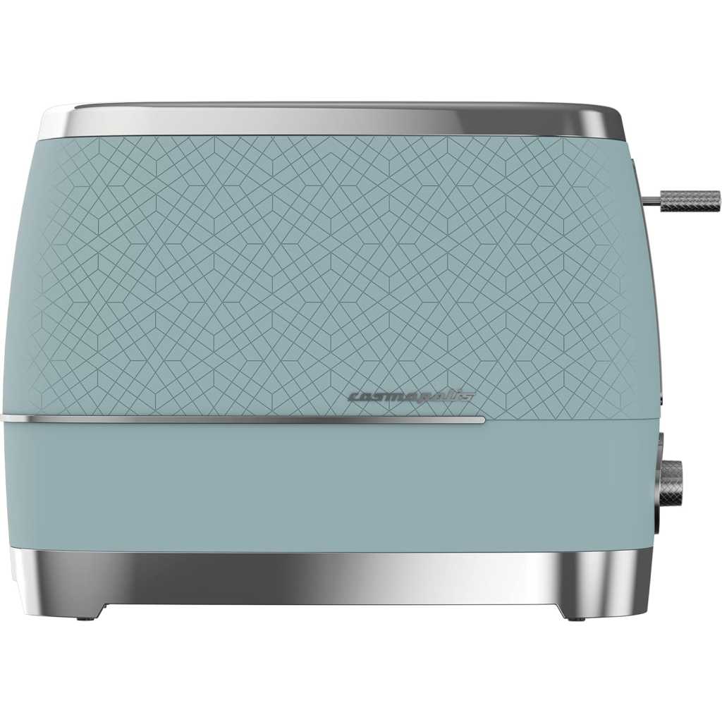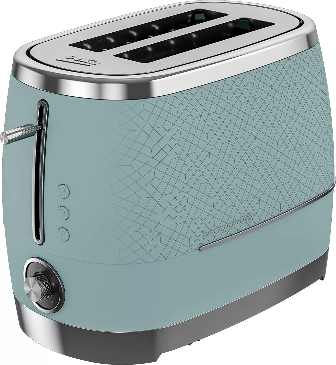 Beko Cosmopolis Toaster TAM8202T. GREAT FOR EXTRA THICK BREAD – From crumpets to burger buns and from bagels to thick slices of bread, the 2 extra wide slots ensures you enjoy a range of toasted bread just the way you like it. DEFROST, REHEAT & CANCEL – Take bread straight from the freezer and have fresh toast in minutes with the defrost setting. The cancel button lets you stop toasting when you choose and the reheat function is great for warming through without browning. TOAST BROWNING CONTROL – Ensure the browning of your toast is exactly how you like it with our fully adjustable dial control. You can alter the heat with precision to allow for thicker slices of toast, bagels or crumpets. DETACHABLE CRUMB TRAY – Say hello to crumb-free work surfaces, thanks to this model’s detachable crumb tray. Simple to remove and easy to clean, this feature helps to keep your kitchen worktops clean and tidy. So, you can enjoy freshly toasted bread slice after slice, without worrying about the mess. HIGH LIFT FUNCTION – Simply lift up the lever to easily remove your toast as soon as it is ready without the need to use any extra tools..CORD STORAGE- The cord can be neatly tucked away under the base of the toaster to keep your kitchen worktop tidy. Key Features: Beko Cosmopolis Toaster TAM8202T. Power: 900W Slice capacity: 2 High Lift function Detachable crumb tray 6 browning Levels Bun-warmer Attachment Defrost function Cancel Reheat Duck egg teal colour