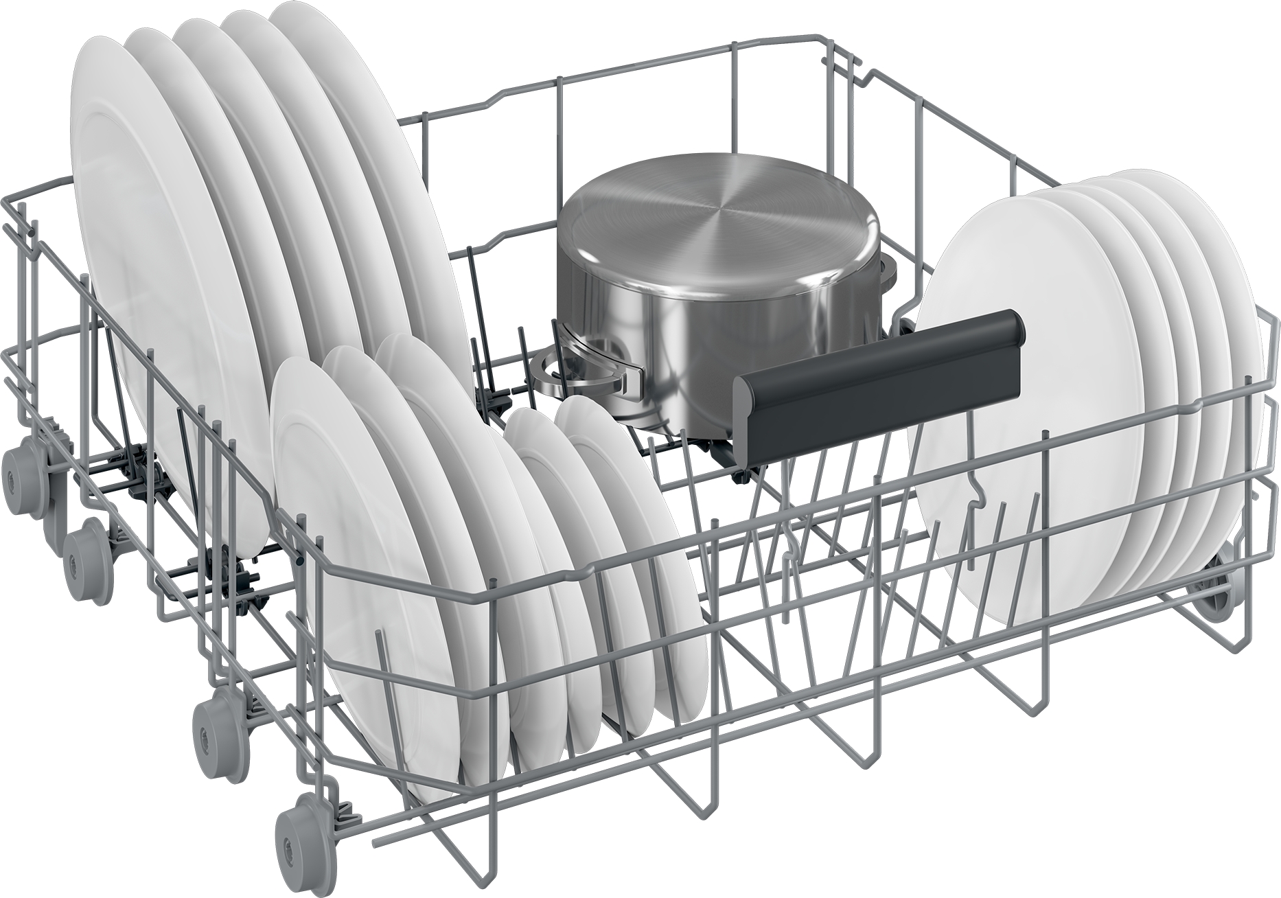Quick & Shine 58 minutes wash for full load – perfect for when you’re in a hurry Choice of 6 programmes to choose from, including the quick Mini 30′ for full load 3 position height adjustable upper basket, even when fully loaded Quick Programmes – Perfect for when you’re in a hurry, our Mini 30’ programme can wash a full load of lightly soiled dishes in just 30 minutes. For dirtier items, our Quick&Shine™ programme will only take 58 minutes to wash a full load – saving you time and money. Fully Flexible Upper Basket – You can make room for larger items in the bottom basket by adjusting the flexible upper basket, with three different height levels to choose from. The basket can be easily moved up and down, even when it’s fully loaded. Folding Plate Supports – For easier and more flexible loading, the plate supports can be folded down to create extra room for your larger dishes, pans and bowls. Auto Programme – Saving you money on your utility bills, while guaranteeing an optimal wash every time, our clever Auto programme will always use the right amount of energy and water, based on how dirty your load is. SelfDry – automatic door opening at the end of the programme for more efficient drying Key Features Quick Programmes – Perfect for when you’re in a hurry, our Mini 30’ programme can wash a full load of lightly soiled dishes in just 30 minutes. For dirtier items, our Quick&Shine™ programme will only take 58 minutes to wash a full load – saving you time and money. Fully Flexible Upper Basket – You can make room for larger items in the bottom basket by adjusting the flexible upper basket, with three different height levels to choose from. The basket can be easily moved up and down, even when it’s fully loaded. Folding Plate Supports – For easier and more flexible loading, the plate supports can be folded down to create extra room for your larger dishes, pans and bowls. Auto Programme – Saving you money on your utility bills, while guaranteeing an optimal wash every time, our clever Auto programme will always use the right amount of energy and water, based on how dirty your load is. SelfDry – automatic door opening at the end of the programme for more efficient drying Half Load Function – Perfect for days when you have fewer dishes and glasses to wash, use the half load function to save time and energy. Salt and Rinse Aid Indicator Lights – With a quick glance at the indicator lights, you’ll be able to tell whether you need to add salt or rinse aid to your dishwasher. Removable Sliding Cutlery Basket – For easier and more flexible loading, the cutlery basket can slide along the width of the dishwasher, and can also be removed completely to create extra room for your larger dishes, pans and bowls.