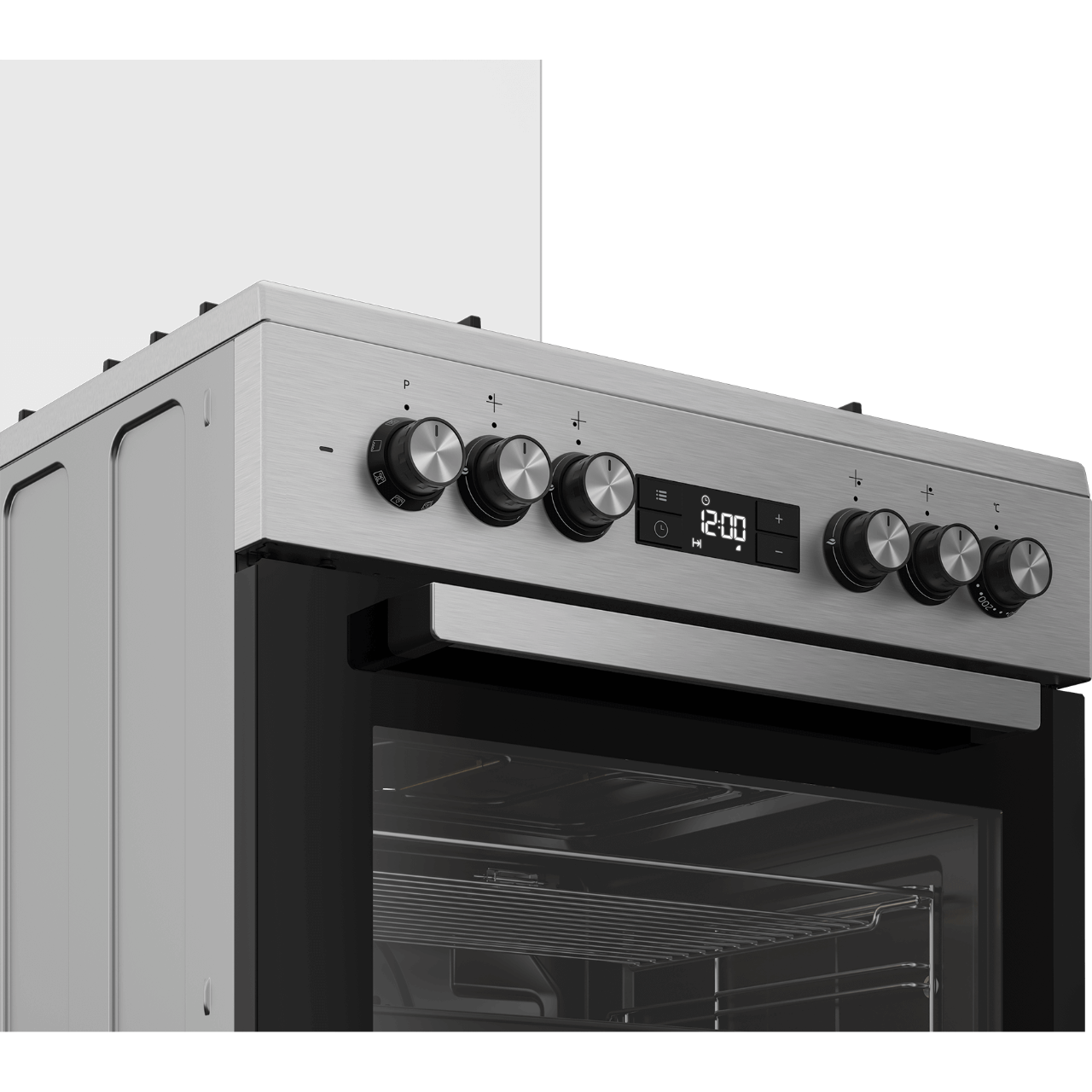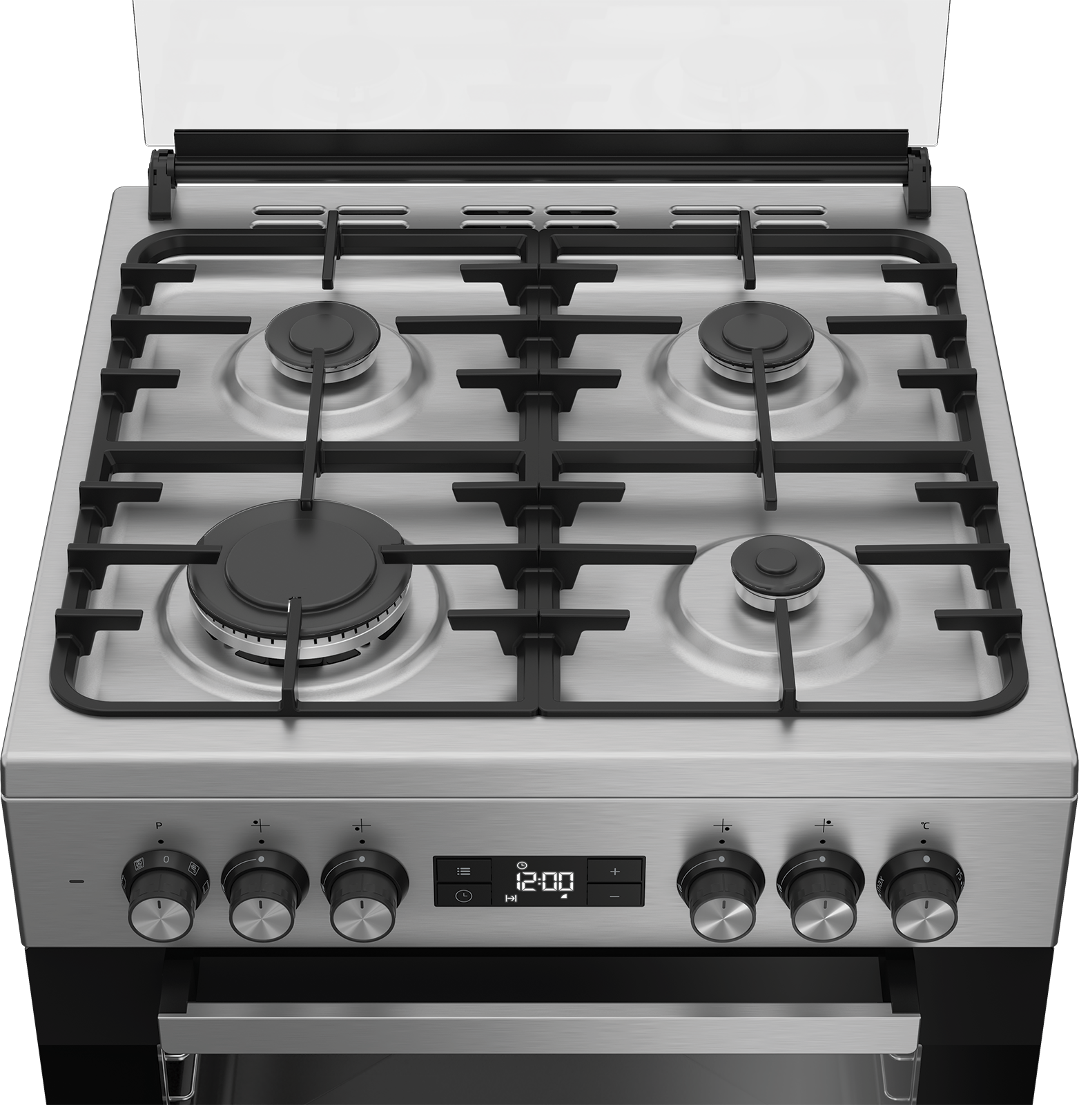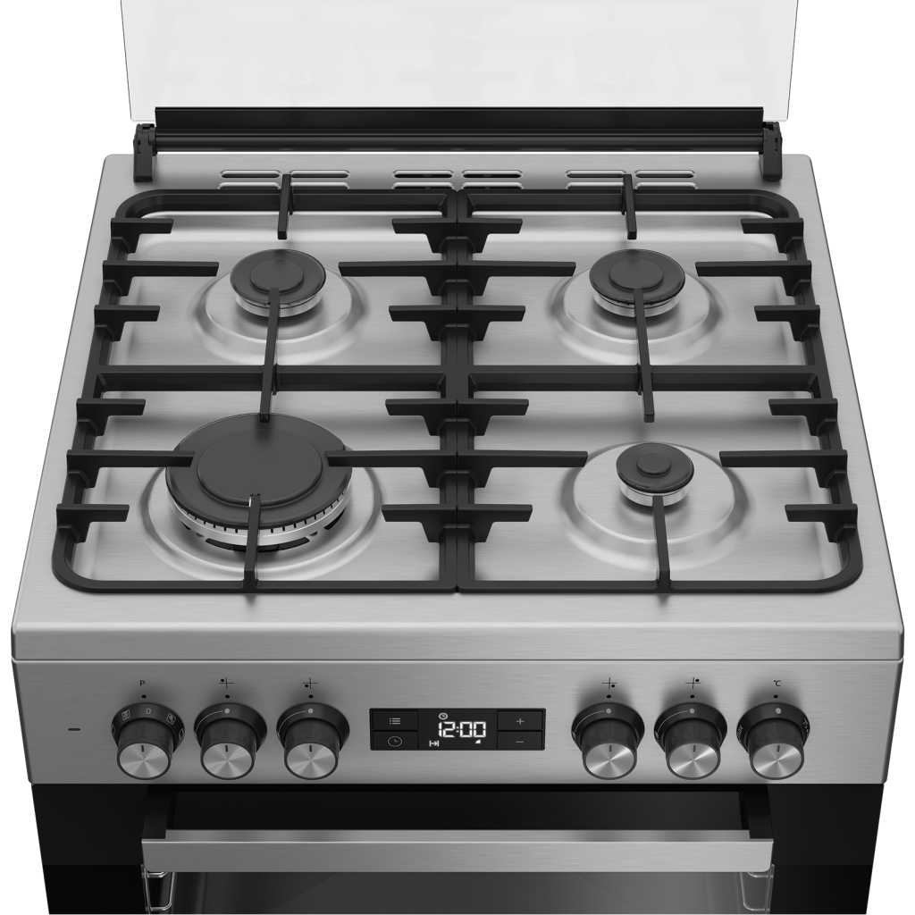 Beko Full Gas Cooker 60x60cm | 3 Gas Burners + 1 Work Hob | LED Display | Electric Oven & Grill | Steam Cleaning | Defrost | FSM61330DXDSL. High Efficiency Gas Burner Faster & more efficient cooking with special burner design Don’t let a busy day cost you a healthy meal. Now you can cook every meal faster and more efficiently on the hob. High Efficiency Gas Burners use less gas and cook more quickly than standard burners. So even when you’re short on time, you can put your favourite meals on the table fast. Key Features: Beko Full Gas Cooker 60x60cm | 3 Gas Burners + 1 Work Hob | LED Display | Electric Oven & Grill | Steam Cleaning | Defrost | FSM61330DXDSL. Inox No plug 3 GaS + 1 Wok hob Integrated ignition (hob) Flame failure device Cast iron pan support Multifunction oven with 8 functions Bottom heating Electric Grill Fan assisted cooking Defrost function Steam Cleaning LED Display