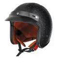 Åben ansigts 3/4 motorcykelhjelm retro vintage PU-læder voksen sort-brun