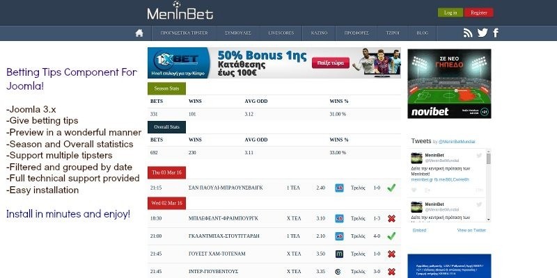 Betting Tips - Joomla Extension. The component helps a site to give betting tips and preview in a wonderful manner.Season statistics and Overall statistics also pr