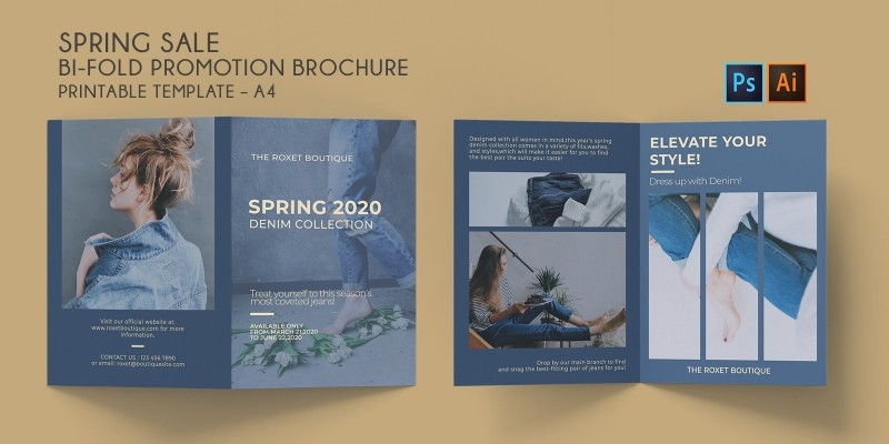 Bi-Fold Fashion Spring Sale Brochure A4. Bi-Fold Fashion Spring Sale Brochure-A4-CMYK 4 Templates PSD/AI