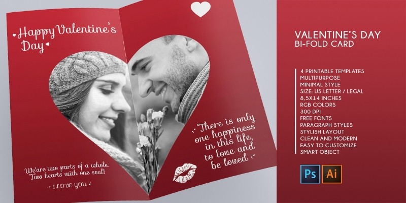 Bi-Fold Valentine Printable Cards. Bi-Fold Valentine Printable Cards – 4 Templates PSD/AI – US Letter/Legal-CMYK