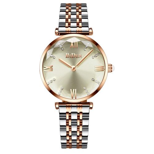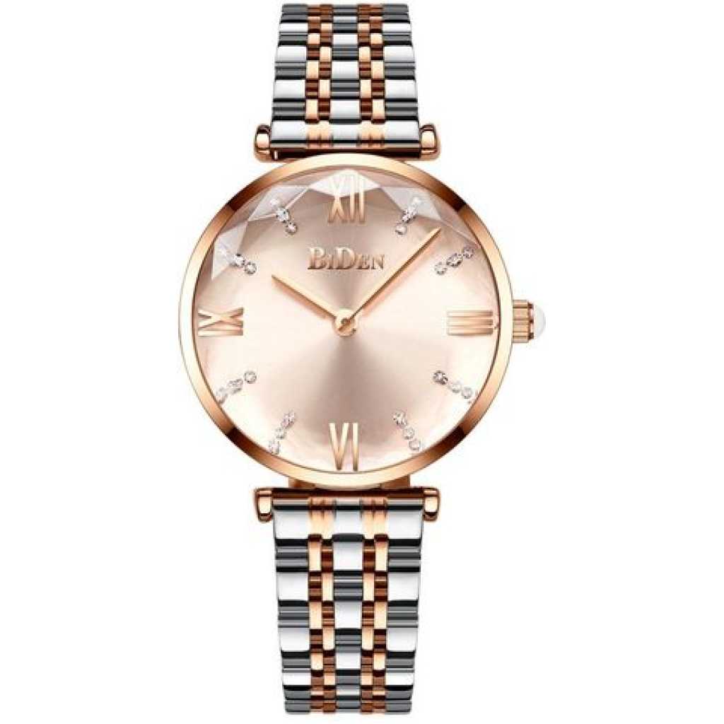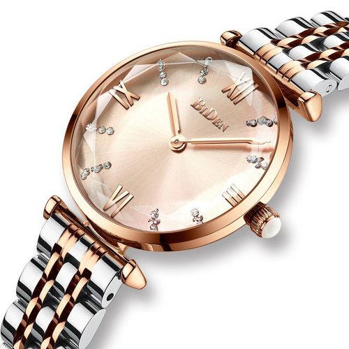 It’s a Biden ladies stainless steel analog and waterproof luxury designer quartz watch silver gold. This watch is designed in a unique appearance with is very attractive. This watch can be put on both casual and office wear.