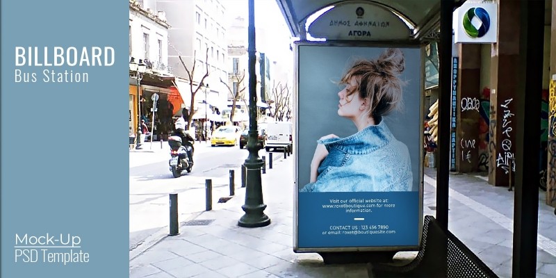 Billboard Bus Stop Mock-Up - PSD Template . Billboard Bus Stop Mock-Up - PSD Template