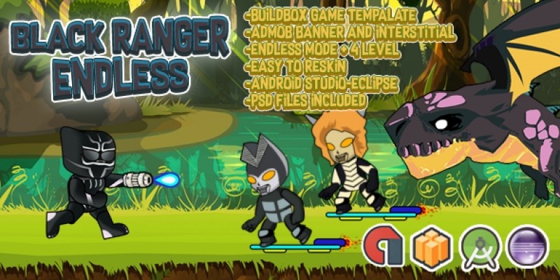 Black Ranger Endless - Buildbox Template. Black Ranger Endless + Admob (BBDOC+Android Studio)
