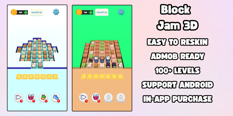 Block Jam 3D - Godot Template. Block Jam 3D is a puzzle game where you must select 3 identical blocks to clear the board.