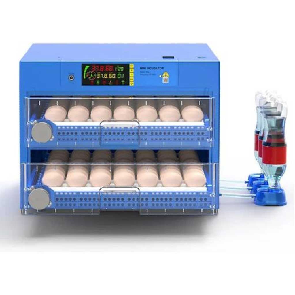 Key Features: Blue Diamond – 120 Egg Automatic Dual Voltage Mini Egg Incubator Fully Automatic Hatcher. Suitable for: Chickens, Ducks, Geese and Other Poultry, Quail, Parrot, Pigeons and Other Birds Convenient temperature & Humidity control, External water sink,Easy to add water Digital displaying of temperature, humidity and turning freqyency. 8. Microcomputer, completely automatic method. Using coal, electricity two heating method. Hatching rate than 98%-100% Full automatically temperature controlling. Full automatically humidity controlling. Egg Capacity 120 for chicken Full automatically eggs turning. Full automatically alarming. Full automatically cooling and ventilator. Back emergency system. 1. Chicken or Hen 128 eggs 2 . Bater or Quail 320 eggs 3. Pigeon 192 eggs 4. Turkey 128 eggs 5. Duck 85 egg 6. Rolling+Drawer type orange color