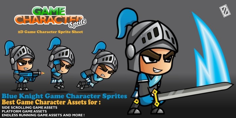 Blue Knight 2D Game Character Sprites. Best assets for game like: Shooting game, Rocket Fly Game, Running Game, Platform Game, and more side Scrolling games.