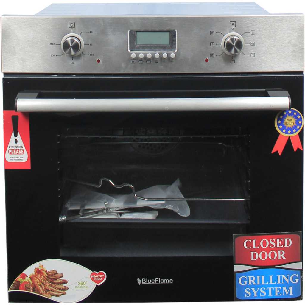 Blueflame 60cm Built-in Electric Oven 7000 BE7, Thermostat, Fan, Grill, Timer – Inox. Electric oven 2 years of guarantee and 3 years of warranty Cooling Fan Up & Down Heating Elements Grill Heater Turbo Fan (0+6 Functions) Limit Thermostat Oven Lamp Stainless Steel & Tempered Black Glass Combined Control Panel 1 Oven Tray 1 Oven Wire Grid Double Glass Oven Door Silver Color Pop Up Knobs & Aluminum Handle Key Features: Blueflame 60cm Built-in Electric Oven 7000 BE7, Thermostat, Fan, Grill, Timer – Inox. Electric oven 2 years of guarantee and 3 years of warranty Cooling Fan Up & Down Heating Elements Grill Heater Turbo Fan (0+6 Functions) Limit Thermostat Oven Lamp Stainless Steel & Tempered Black Glass Combined Control Panel 1 Oven Tray 1 Oven Wire Grid Double Glass Oven Door Silver Color Pop Up Knobs & Aluminum Handle