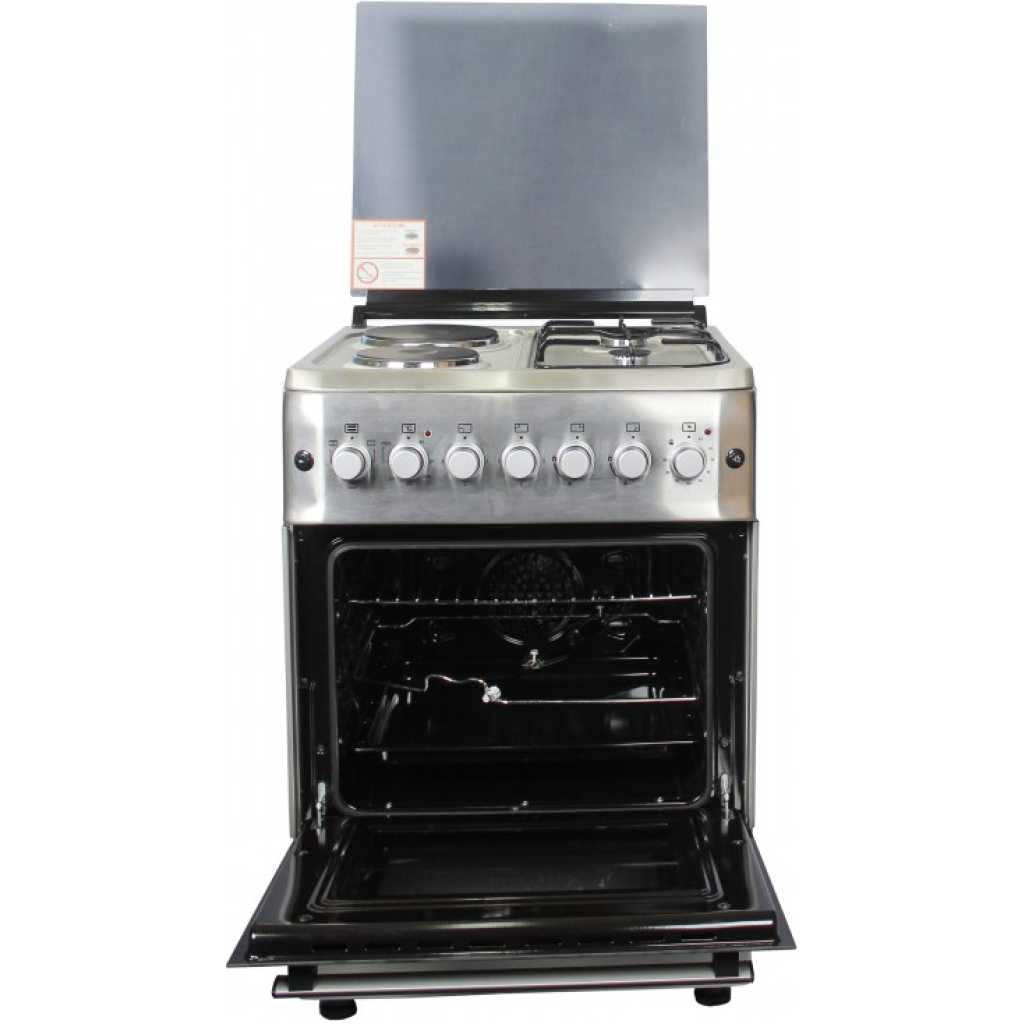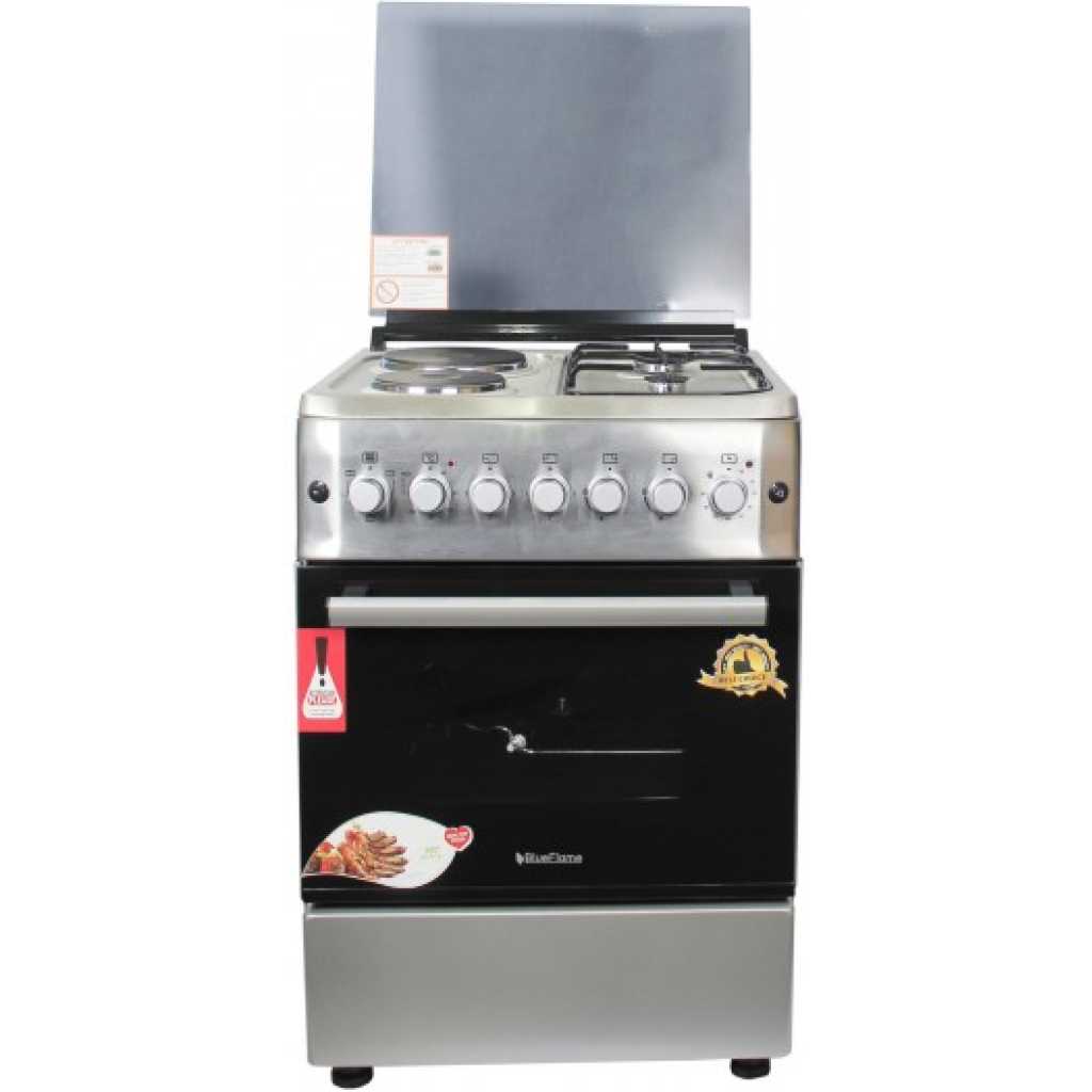 BlueFlame S6022ER-P 2 Gas and 2 Electric Hot Plate Cooker – Inox 60*60cm 2 gas burners 2 electric hot plates electric oven with light Temperature regulator rotisserie inox – stainless steel glass top lid 2 years gauranty and 3 years warranty Key Features: 60*60cm 2 gas burners 2 electric hot plates electric oven with light Temperature regulator rotisserie inox – stainless steel glass top lid 2 years gauranty and 3 years warranty