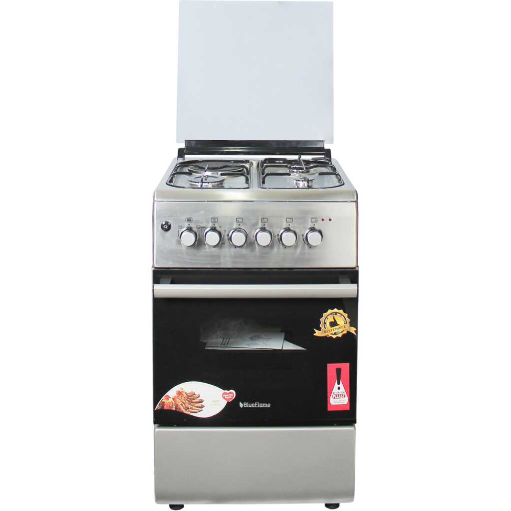 Blueflame Combo Cooker 60x50CM NL6031E, 3 Gas + 1 Electric Plate, Electric Oven & Grill, Auto Ignition, Thermostat, Oven Lamp – Inox. 1 Electrical Hot Plate 3 Gas Burners Electrical Oven Thermostat jet nozzles Push Button Ignition Enamel Oven & Hob Cavity Glass top Lid Oven lamp 1 Tray + Wire Grid Chromed Oven Rack Adjustable Legs Stainless steel 2 year gaurantee and 3 year warranty Key Features: Blueflame Combo Cooker 60x50CM NL6031E, 3 Gas + 1 Electric Plate, Electric Oven & Grill, Auto Ignition, Thermostat, Oven Lamp – Inox. 1 Electrical Hot Plate 3 Gas Burners Electrical Oven Thermostat jet nozzles Push Button Ignition Enamel Oven & Hob Cavity Glass top Lid Oven lamp 1 Tray + Wire Grid Chromed Oven Rack Adjustable Legs Stainless steel 2 year gaurantee and 3 year warranty