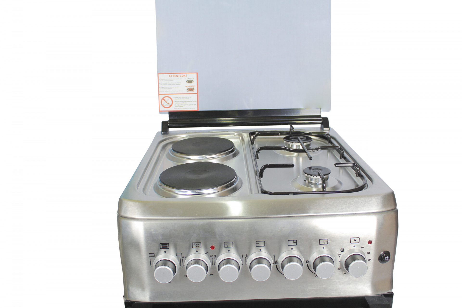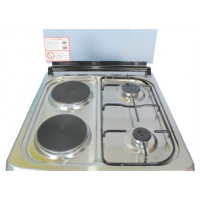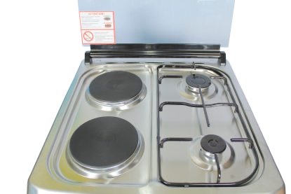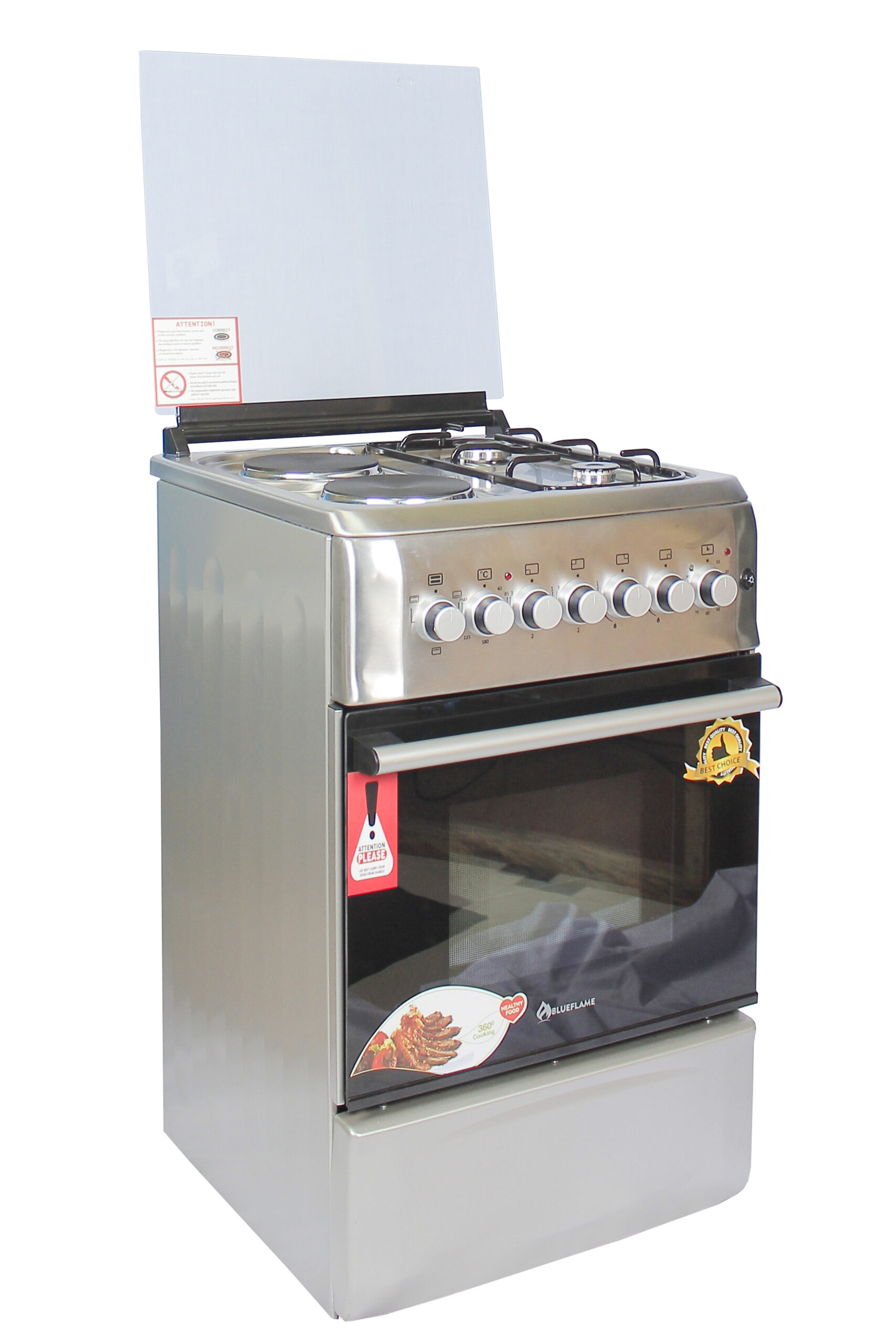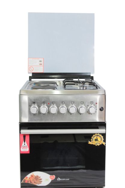Key Features: BlueFlame Cooker 50x55cm 2 Gas Burners And 2 Electric Plates SH5022E – I – Inox. 2gas burners 2 electric plates Electric oven Self Ignition Has a thermostat (temperature regulator) Jet nozzles Stainless steel glass cover 2 years of guarantee and 3 years of warranty 50cm length 55cm width