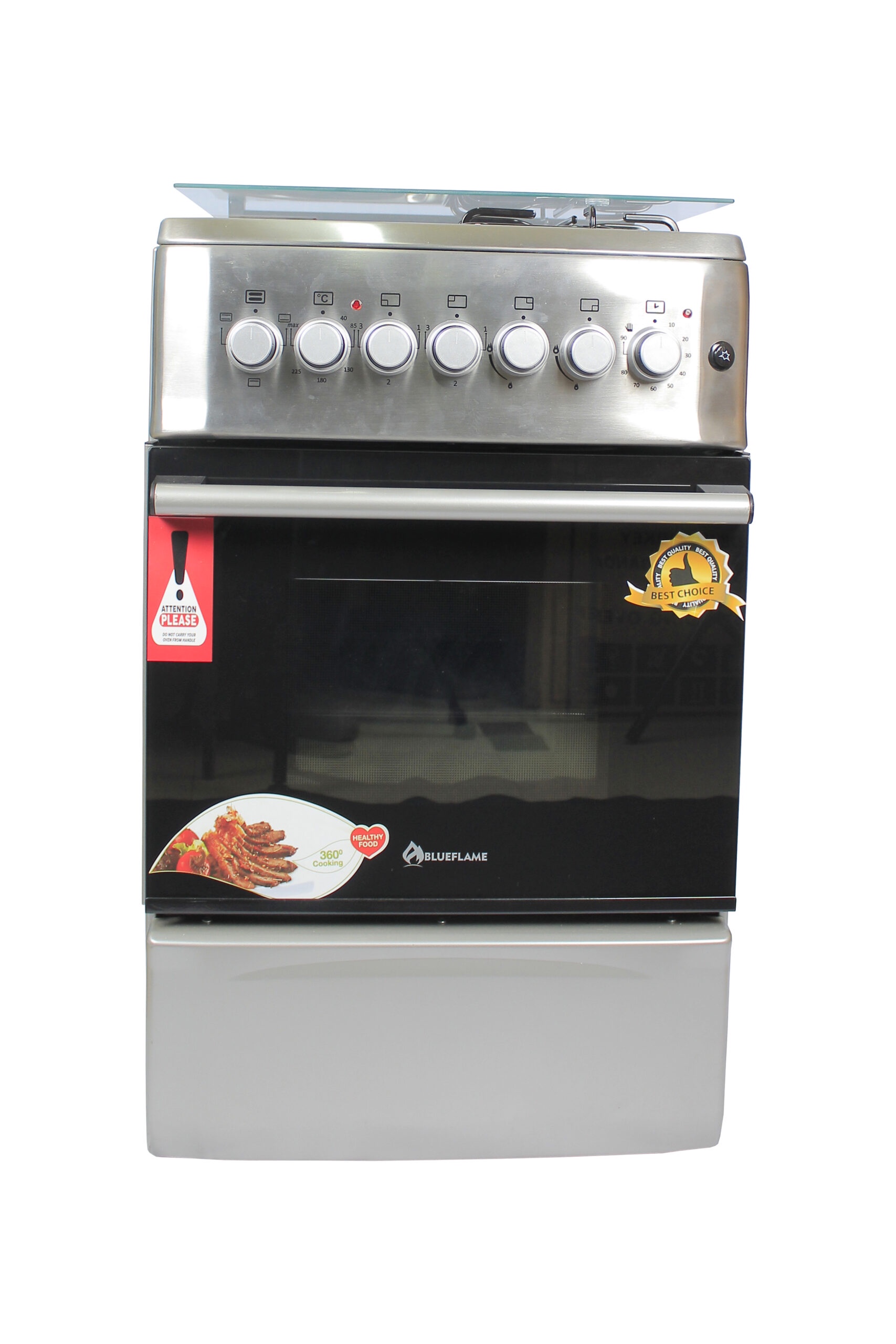 BlueFlame Cooker 50x55cm 2 Gas Burners And 2 Electric Plates SH5022E – I – Inox. BLUEFLAME is a leading manufacturer of electronic home appliances. Their products are affordable, innovative and durable. For every household and kitchen need, Bruhm has an appliance that will make every task simple and fun and turns your house into a home. Order for the Blueflame Cooker – Inox Free Standing Gas Cooker Online at TilyExpress Uganda today at a great, affordable price and let it get delivered to you straight to your doorstep or place of work. Auto Ignition No need to look for match sticks when using the gas burner. This BLUEFLAME Gas cooker comes with auto ignition. Easy Cleaning The BLUEFLAME Gas Cooker surface material of this cooker makes it easy to clean. The panels are also removable so you can thoroughly clean. Oven & Grill Prepare your food in other ways other than direct cooking. By using the oven and grill, food acquires a stronger, sweeter and healthier flavour.