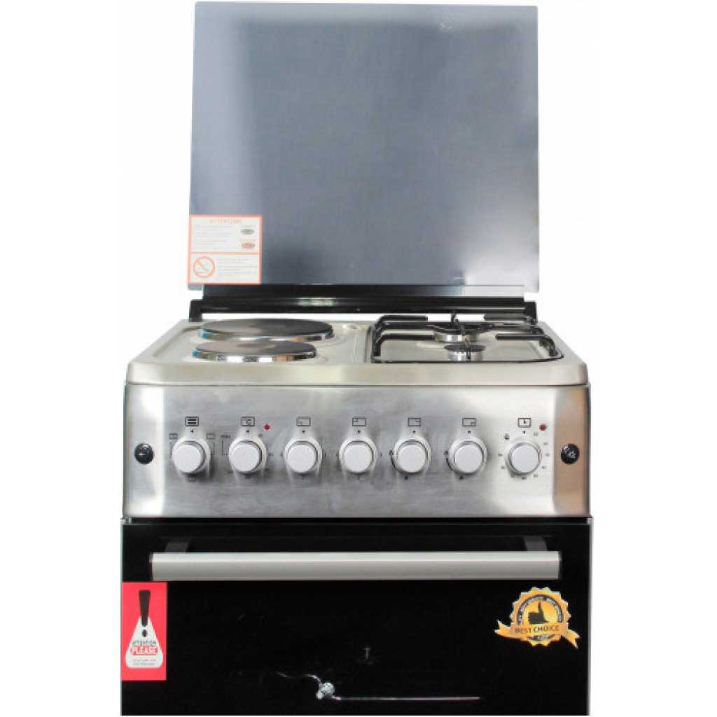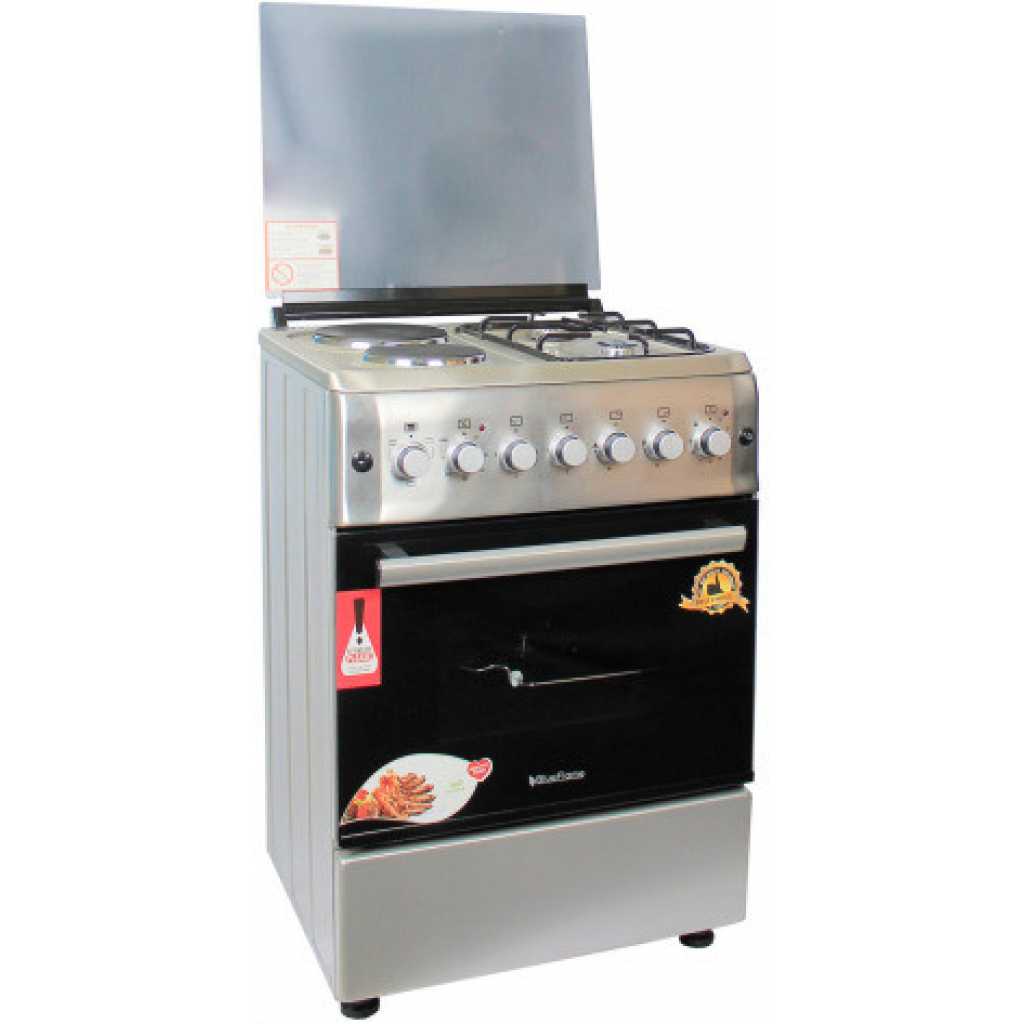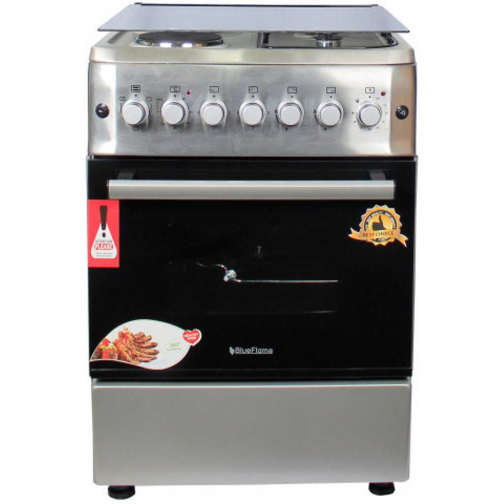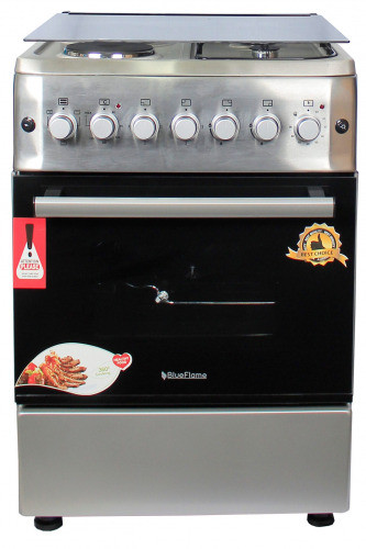 BlueFlame Cooker S6022ERF – IP 60x60cm 2 Gas Burners And 2 Electric Plates With Electric Oven. 2 Gas Burners 2 Electrical plate Electrical Grill Electrical Oven Turbo fan Push Button Ignition Thermostat Turnspit(rotisserie) Enamel Grid Glass Lid 1 Tray + Wire Grid Analog Timer Chromed Oven Rack Adjustable Legs Stainless steel 2 years of guarantee and 3 years of warranty Key Features: BlueFlame Cooker S6022ERF – IP 60x60cm 2 Gas Burners And 2 Electric Plates With Electric Oven. 2 Gas Burners 2 Electrical plate Electrical Grill Electrical Oven Turbofan Push Button Ignition Thermostat Turnspit(rotisserie) Enamel Grid Glass Lid 1 Tray + Wire Grid Analog Timer Chromed Oven Rack Adjustable Legs Stainless steel 2 years of guarantee and 3 years of warranty