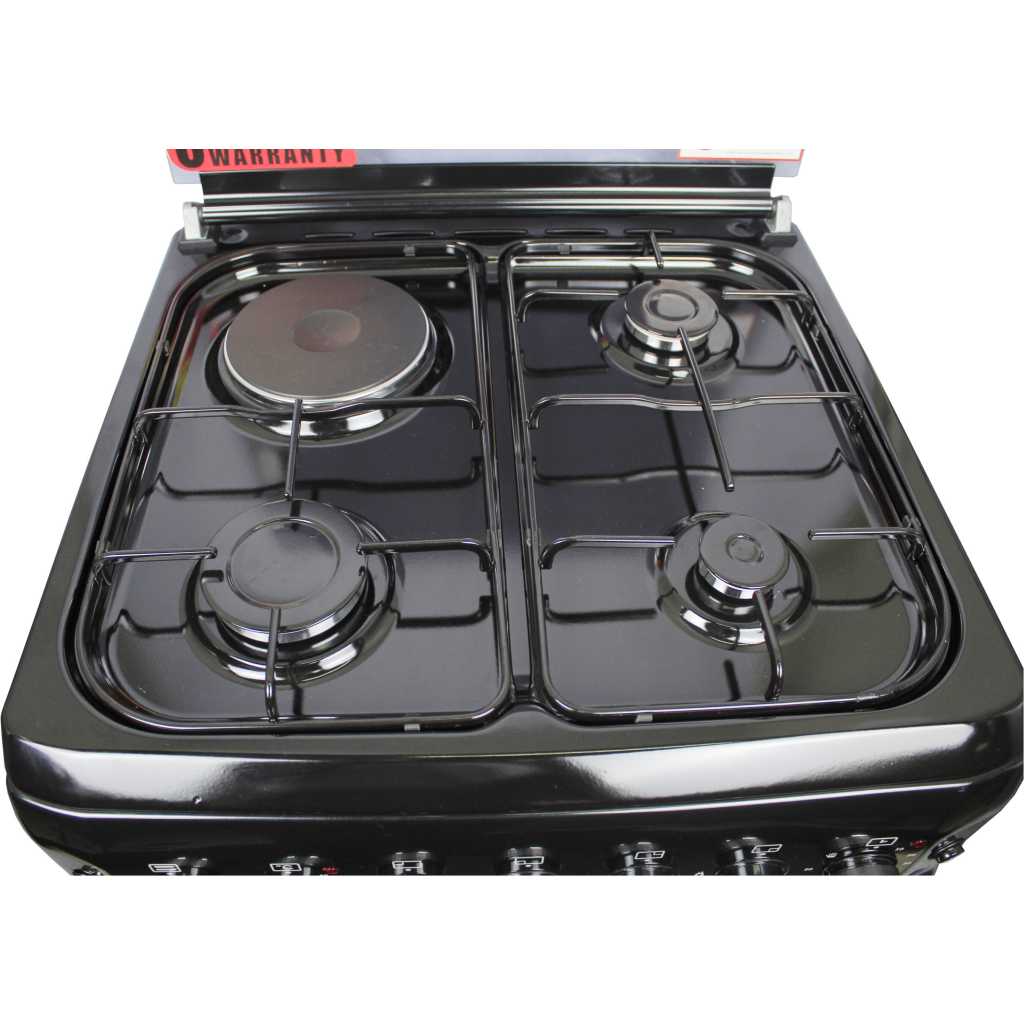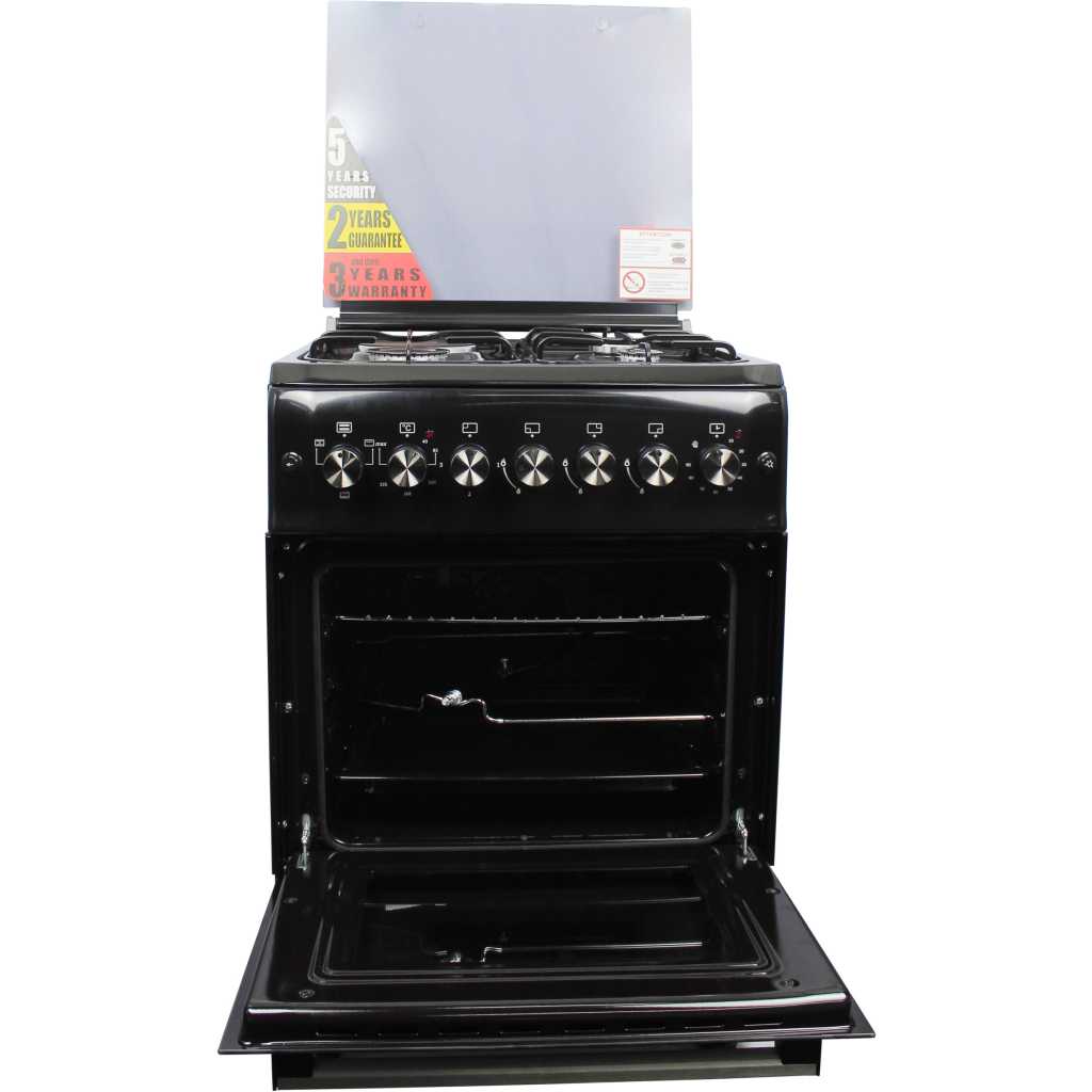 Key Features: BlueFlame Cooker 60x60cm, 2 Gas Burners And 2 Electric Plates; S6031EFRP With Electric Oven & Grill, Auto Ignition, Rotisserie, Oven Lamp – Black 2 Gas Burners 2 Electrical plate Electrical Grill Electrical Oven Turbofan Push Button Ignition Thermostat Turnspit(rotisserie) Enamel Grid Glass Lid 1 Tray + Wire Grid Analog Timer Chromed Oven Rack Adjustable Legs Stainless steel 2 years of guarantee and 3 years of warranty
