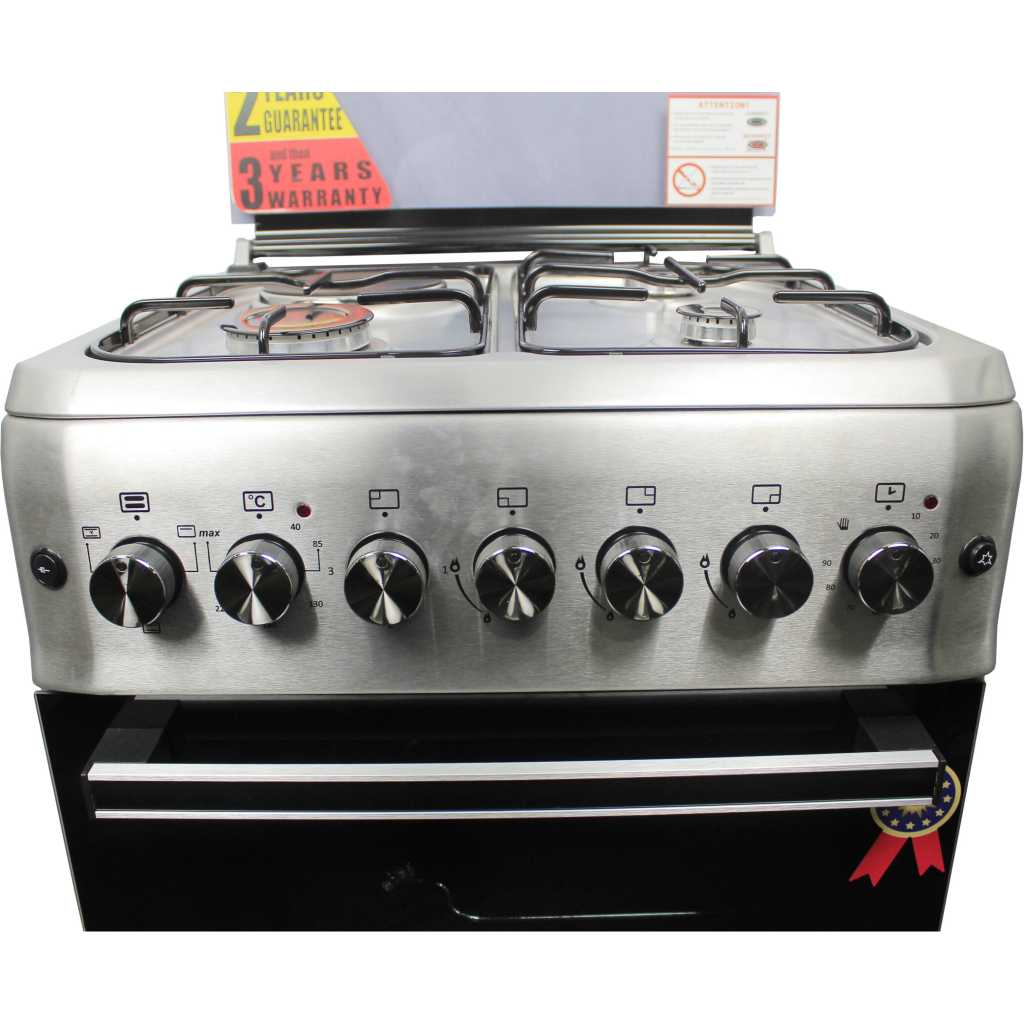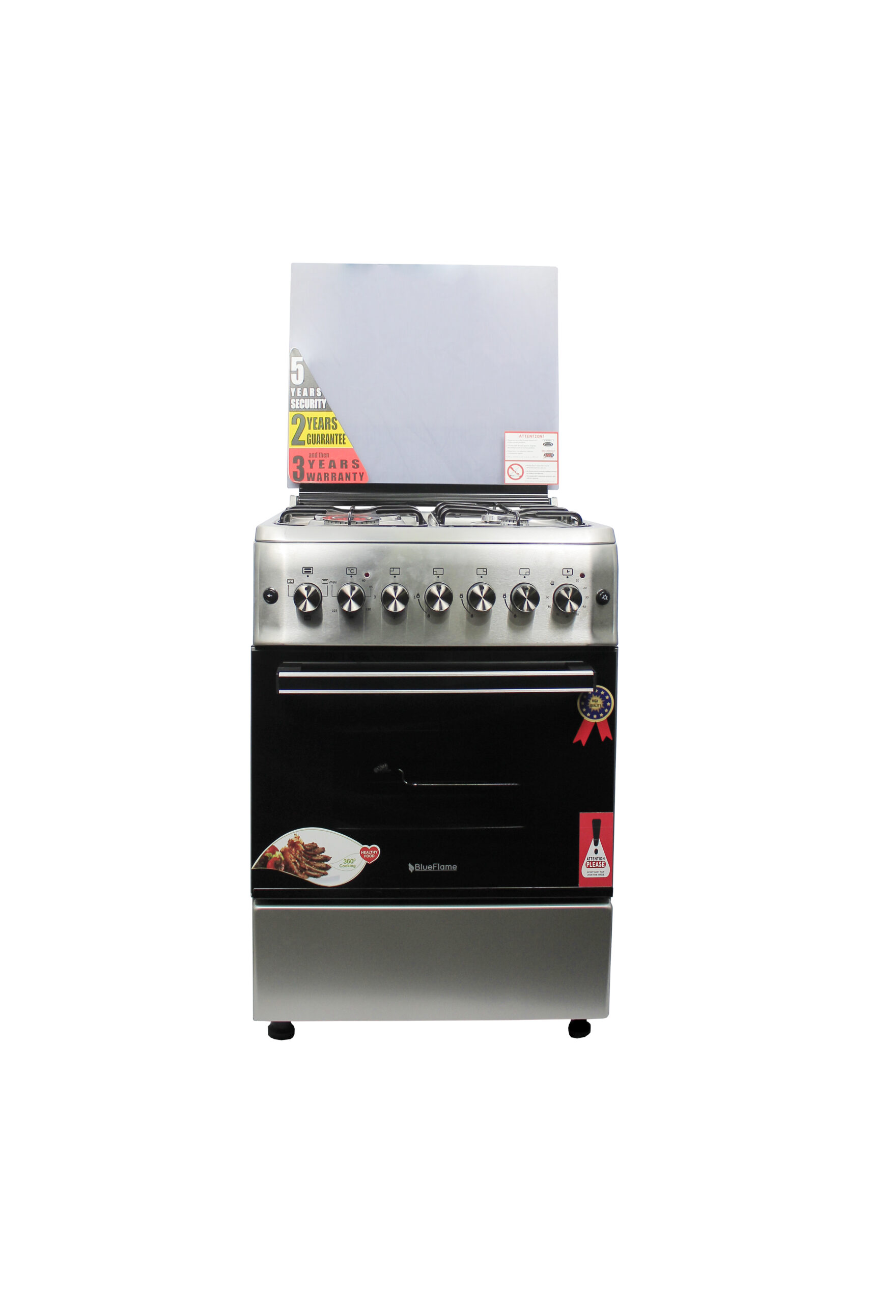 BlueFlame Cooker 60x60cm, 3 Gas Burners, And 1 Electric Hot Plate With Electric Oven – Inox. BLUEFLAME is a leading manufacturer of electronic home appliances. Their products are affordable, innovative and durable. For every household and kitchen need, Bruhm has an appliance that will make every task simple and fun and turns your house into a home. Order for the Blueflame Cooker – Inox Free Standing Gas Cooker Online at TilyExpress Uganda today at a great, affordable price and let it get delivered to you straight to your doorstep or place of work. Auto Ignition No need to look for match sticks when using the gas burner. This BLUEFLAME Gas cooker comes with auto ignition. Easy Cleaning The BLUEFLAME Gas Cooker surface material of this cooker makes it easy to clean. The panels are also removable so you can thoroughly clean. Oven & Grill Prepare your food in other ways other than direct cooking. By using the oven and grill, food acquires a stronger, sweeter and healthier flavour. Key Features: BlueFlame Cooker 60x60cm, 3 Gas Burners, And 1 Electric Hot Plate With Electric Oven – Inox. 3 gas burners 1 electric plate Electric oven with light Has a thermostat (temperature regulator) self Ignition Stainless steel has jet nozzles Rotisserie Timer turbo fan glass top cover 1 oven tray 1 grill net 60cm length 60cm width 2 years of guarantee and 3 years of warranty