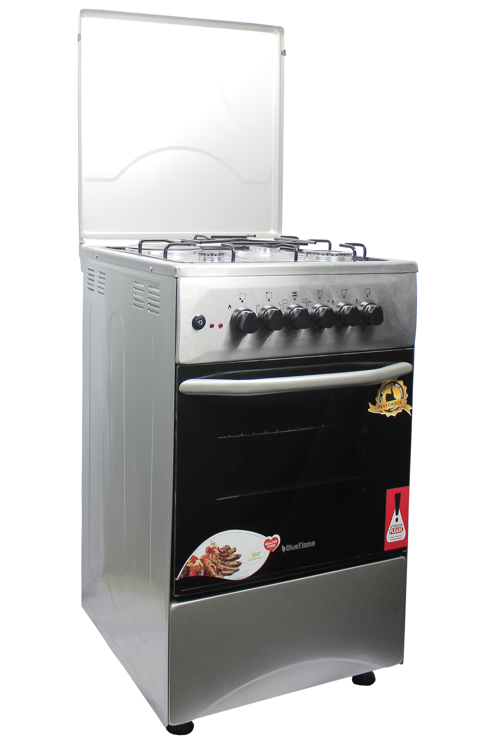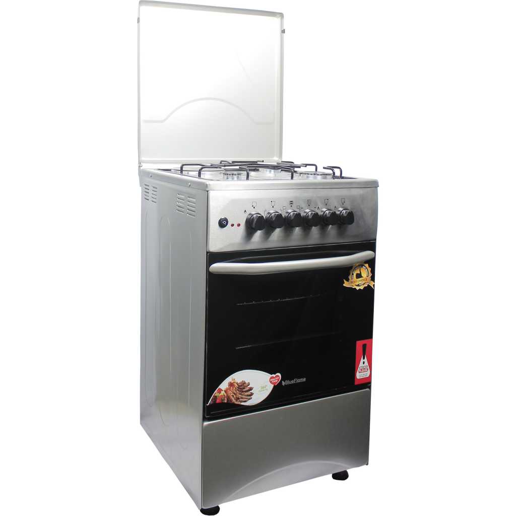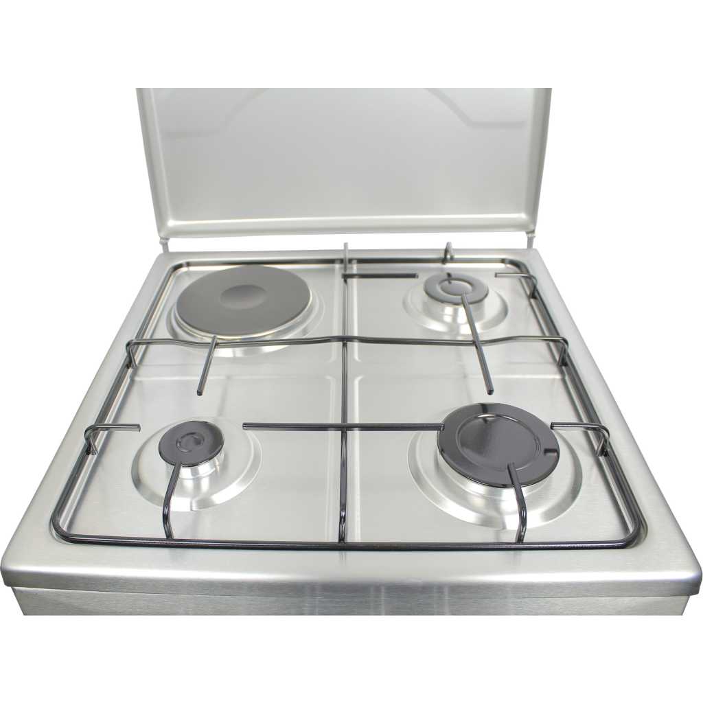 Blueflame Cooker C5031E – B 50x50cm 3gas burners and 1 electric plate with electric oven, black. . Cooking is one of most inevitable things we do everyday. How much time you spend preparing the meal depends on your choice of cooker. Make your meals even faster and better with this Cooker. Cooking with this hob allows you make up to 4 different meals all at once without having to bother about time and stress. Make cooking a fun experience with this easy to use gas hob. With different fire regulation settings, cook any dish the right way with just the right amount of heat. Its portable and lightweight design makes it easy to fit any kitchen space. Features 1 Electrical Hot Plate 3 Gas Burners Electrical Oven Thermostat Push Button Ignition Enamel Oven & Hob Cavity Metallic top Lid Oven lamp 1 Tray + Wire Grid Chromed Oven Rack Adjustable Legs Stainless steel 2 year gaurantee and 3 year warranty Key Features: Blueflame Cooker C5031E – I 50x50cm 3 Gas Burners And 1 Electric Plate, Electric Oven – Inox 1 Electrical Hot Plate 3 Gas Burners Electrical Oven Thermostat Push Button Ignition Enamel Oven & Hob Cavity Metallic top Lid Oven lamp 1 Tray + Wire Grid Chromed Oven Rack Adjustable Legs Stainless steel 2 year gaurantee and 3 year warranty
