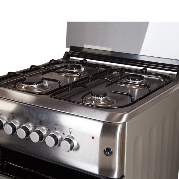 Four gas burners gas oven with the light turbo fan rotisserie inox – stainless steel Glass top lid 60cm length 60cm width 1 year warranty