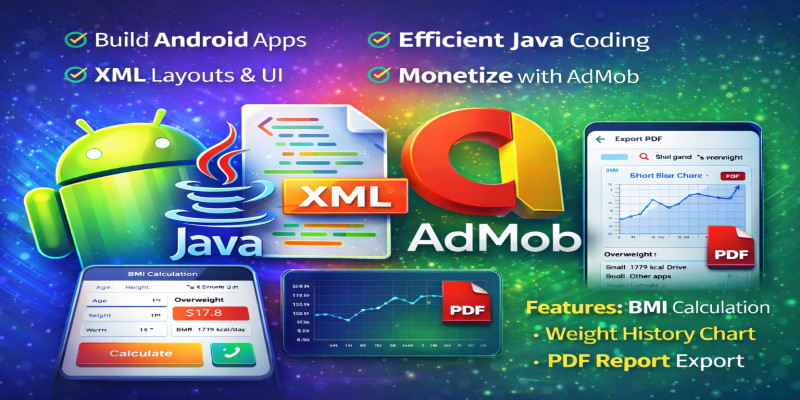 BMI Calculator Android App - Health Tracker. Professional BMI Calculator Android app with BMR, Body Fat, PDF report, charts, AdMob ads, built using Java & XML.