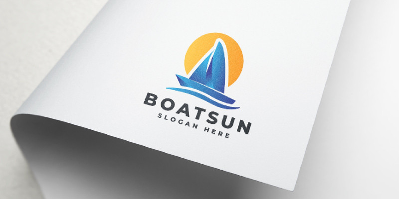 Boat Sun Sailing Logo. Boat Sun Sailing professional logo an excelent logo template suitable for your company. 100% Vector shapes.