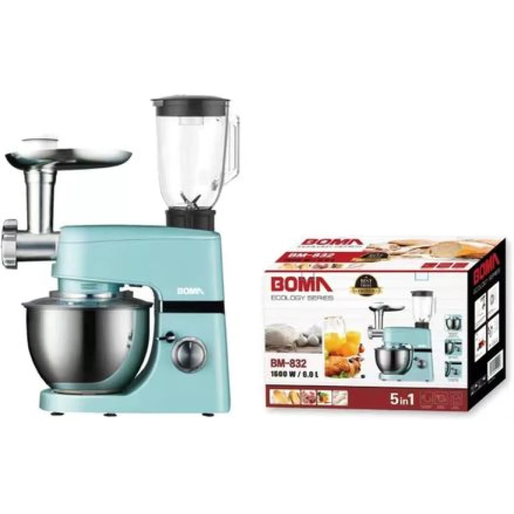 Boma 6Litre 5 IN 1 Stand Mixer 16000W Tilt-Head Multifunctional Electric Mixer With Stainless Steel Bowl, Beater, Hook, Whisk, Meat Grinder, Juice Blender With Glass Jar Dishwasher Safe - Multicolor