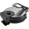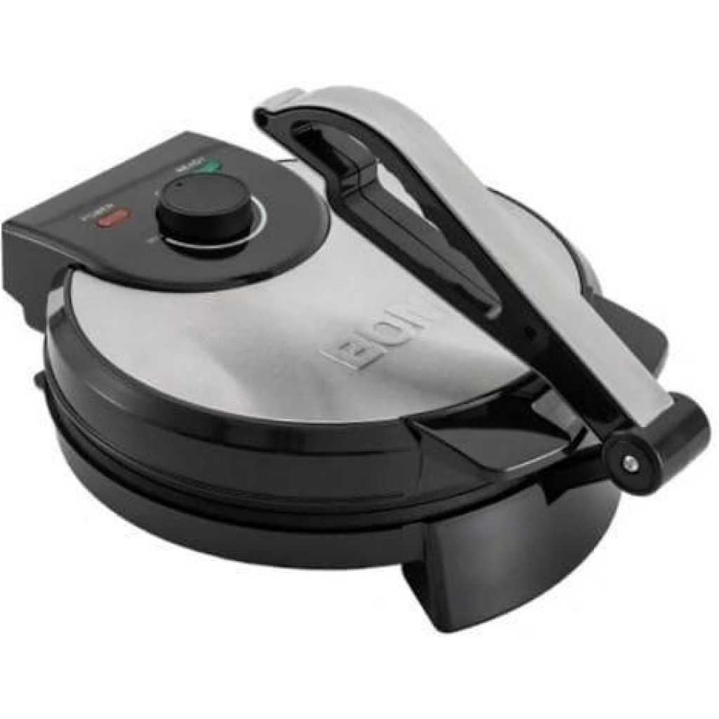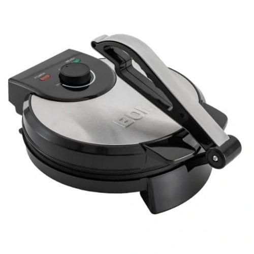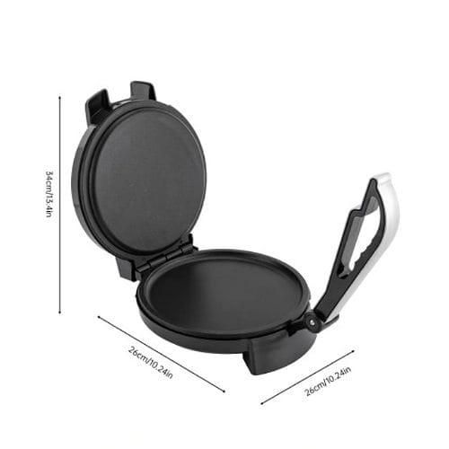 Create sweet and spicy pancakes every day of the year with a pancake. Cooking your favorite sweet or spicy pancake recipe is simple; warm up the device, wait about 5-8 minutes and apply the cake for one of the 5 pancake molds to enjoy delicious treats and tasty breakfasts in a few minutes. . . Specifications: Heating: double layer heating Color: black + silver Feature: Fried, baked Package dimensions: 35 x 28.5 x 19 cm Weight: 2.3 kg Voltage: AC 220 V 50 Hz 1800 W The package contains: 1 x Tortilla/ Heater 1 x User Manual High quality and safe materials: High quality stainless steel makes the Roti express resistant to wear, rust and impact. The high-quality bakelite frame can effectively prevent leakage or burns, so that families with children can safely use it. Non-stick coating: A non-sticky kitchen board helps to avoid burning food, reduces the amount of oil used, makes the food tastier and healthier, and also makes it easier to clean with a damp cloth. Temperature control: With a knob, you can adjust the temperature (up to 500oF) depending on your culinary needs, thus preparing various delicious dishes. High efficiency: With a power of 1200 W, flat hoop and double-sided heating method, this roti maker ensures even and fast heating, making delicious pancakes with a uniform color and shape in a few minutes. High safety: The heat sink holes at the bottom ensure excellent heat dissipation during operation, and the machine automatically stops heating up after completion, so you can use it calmly. Compact and lightweight: With a weight of 5.5 pounds and a small size (10.24 x 13.4 x 7.68 inches), it does not take up too much space and allows easy use and storage. Stylish look: The round frame in classic black and silver colors makes this product look delicate and charming, which is a stylish and modern addition to your kitchen. Easy to use: just connect the power supply and start the machine. Even beginners can easily start. Protective shipping: To prevent damage and impacts of the product during transportation, we fill the package with foam to protect your products as much as possible.