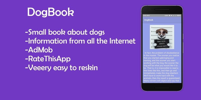 Book about dogs - Android Studio Project. Small book about how take care of dogs and training them