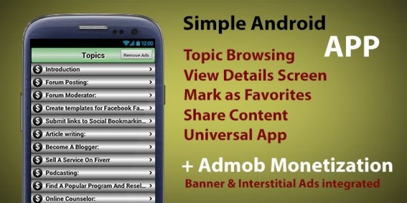 Book or Topics App - Simple Android App Template . This is a simple Android app that lets you show a list of Topics. When tapped on a topic, detailed content will be shown. User can