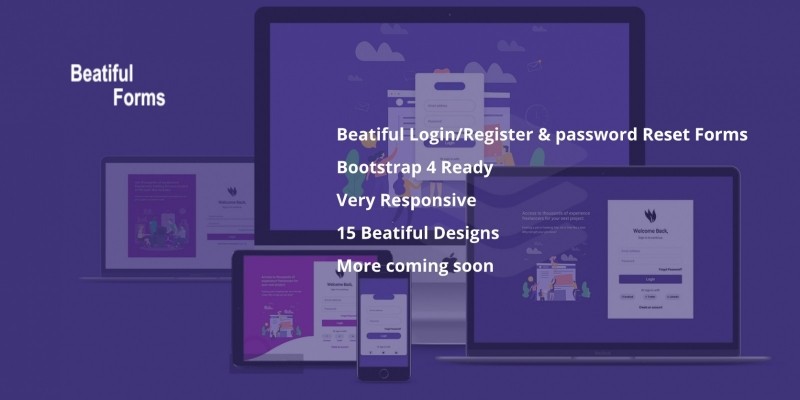 Bootstrap Beatiful Forms. Bootstrap Beatiful Forms is a bootstrap 4 login, registration and password reset site template to enhance your website beauty.