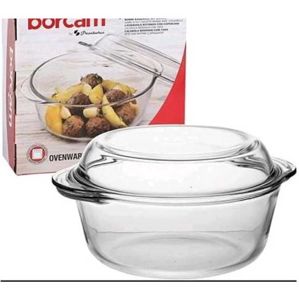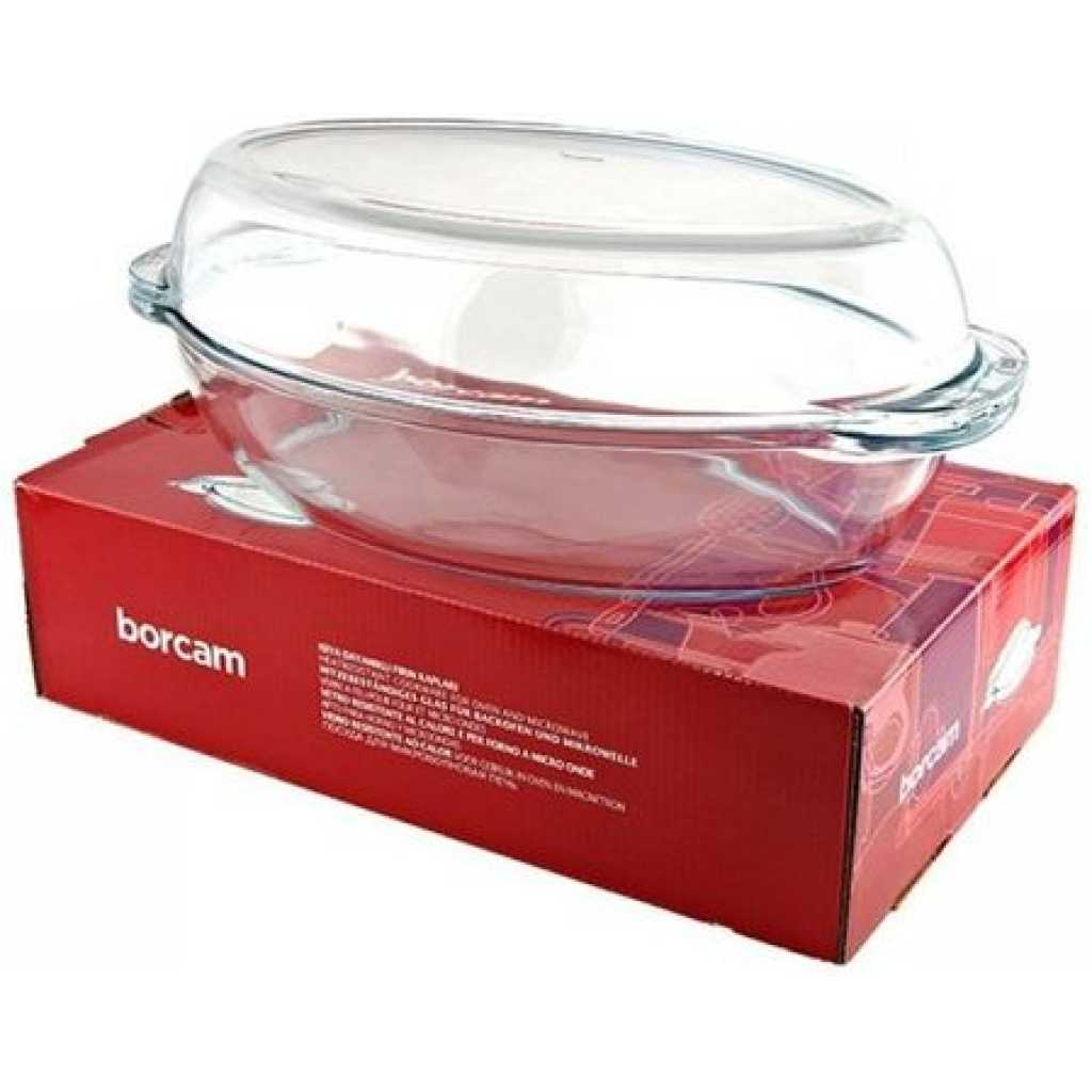 Borcam Oval Casserole Dish With Heat Resistant Oven Microwave Safety – Clear The borcam Casserole dish is made from superior-quality borosilicate glass. The dish has a high thermal shock resistance making it a perfect solution for oven-to-table cooking. Pasabahce Borcam Casserole dish com with a lid. Cookware: bake and serve dishes for baking in the home kitchen or for professional use. Heat Resistance: oven-safe microwave-safe freezer safe dishwasher-safe. Key Features: Borcam Oval Casserole Dish With Heat Resistant Oven Microwave Safety – Clear Made of glass Dish washer safe Easy grip handles High Thermal Shock Resistance Stain resistant and does not retain flavors Ovenproof, Freezer, Microwave, and Dishwasher safe Easy Cleaning