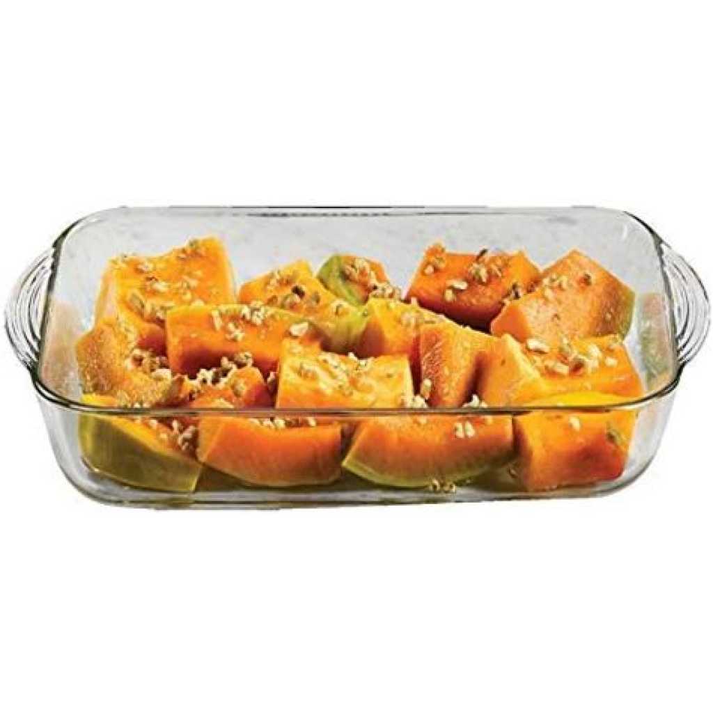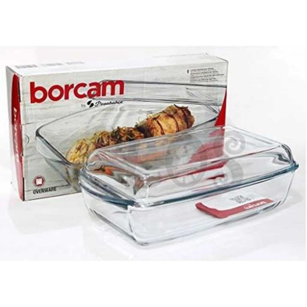 Borcam Rectangular Casserole Dish With Heat Resistant Oven Microwave Safety – Clear The borcam Casserole dish is made from superior quality borosilicate glass. The dish has a high thermal shock resistance making it a perfect solution for oven-to-table cooking. Pasabahce Borcam Casserole dish com with a lid. Cookware: bake and serve dishes for baking in the home kitchen or for professional use. Heat Resistance: oven-safe microwave-safe freezer safe dishwasher-safe. Key Features: Borcam Rectangular Casserole Dish With Heat Resistant Oven Microwave Safety – Clear Made of glass Dishwasher safe Easy grip handles High Thermal Shock Resistance Stain resistant and does not retain flavors Ovenproof, Freezer, Microwave, and Dishwasher safe Easy Cleaning