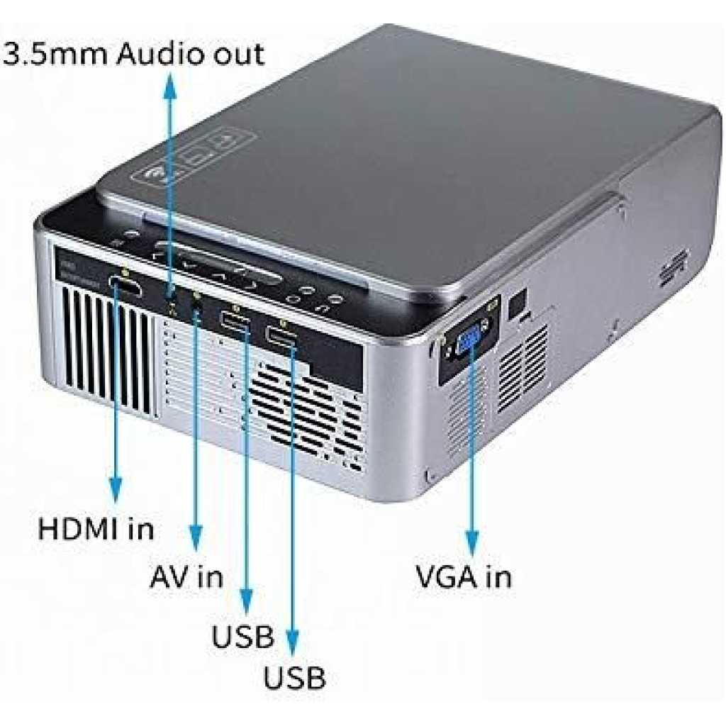 Description: Color: Silver Type: LCD projector Projector technology: LCD screen + LED light LCD size: 4.0 inch LCD screen WIFI: Support System: Support for Android 7.1 Bluetooth version: 4.0 Physical resolution: 800*480 Support resolution: SVGA (800 × 600) / XGA (1024 × 768) / 720P (1280 × 720) / WXGA (1280 × 800) Projector brightness: 3000 lumens Ram: 1GB built in memory: 8GB user free 5.7GB Contrast: 1000:1 Lens: manual focus Projector light: LED light (more than 30,000 hours) Projection interface USB * 2 / headphone jack (3.5 mm) / TF card slot * 1 Projector ratio: 16:9/4:3 Flip function: 360 degree flip Keystone correction: V +/- 15° Projection distance: 1~4m Projection size: 36-150inch Supported languages: English, French, German, Spanish, Italian, Portuguese, Russian, Polish, Arabic, Chinese, Turkish, Japanese, Thai, Vietnamese, Dutch, Hungarian, Czech, Romanian, Greek, Finnish, Swedish Language, Norwegian, Danish…” Audio: Built-in dual speakers, 2 * 3W Startup time: 5S Quality certification: CE, FCC, Rohs Application: Home theater and entertainment, early childhood education Connection: Mirror with Lightning cable or USB cable, Wifi connection (Miracast, Airplay) wire cast. Input voltage: 110V-240V (±10%), 50-60Hz Power consumption: 45W Product size: 197 * 166 * 78mm Service: if you have any questions, please feel free to contact us, we are waiting to offer the best service as we can. Model: T6 Input: AV , USB , HDMI Video Format Resolution: 720P (1280×720) Brightness (lm): 3800 Image System: LED Contrast Ratio: 1000:1 Picture Size (inch): 40-200 Projection Distance (m): 1.2-5 Aspect Ratio: 4:3 and 16:9 Built in Android System, Wifi, HDMI OUT instantly become set-top box (Only for T6 Android) Support APK install, can instantly become the network set-top box Item Type: LED Smart WIFI Projector Package Contents What’s in the box: AV Cable , 1 x Projector , 1 x User Manual , 1 x Remote Control