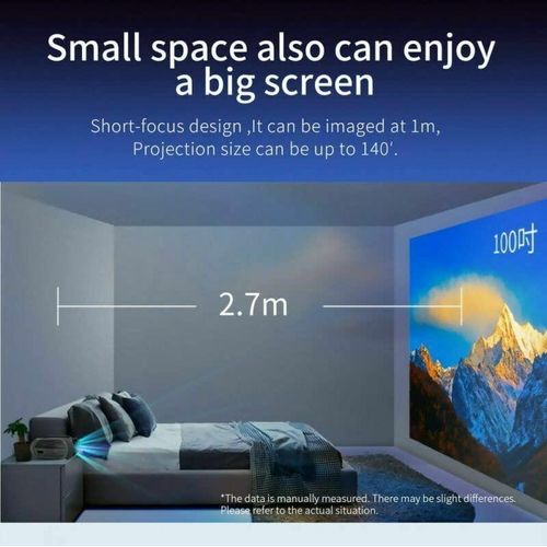 Key Features: Borrego T7 HD 1080P Smart Home Theater Projector Multimedia Multi-Screen Interactive (7000 lm) Portable Projector- Multicolor 【HD High Refractive Mirror Lens】 This camera kit has a large diameter HD high reflective mirror lens, which can significantly increase the luminous flux. 【Short Focus Optical System】Using the principle of short focus optical system, the projection distance is large, and the distance of 2.7 meters can project 100 inch images onto a large screen. 【1280×720 RGB Picture Unit】 There is a 1280×720 RGB picture unit, which reduces the low-resolution graininess and makes the image brighter and more delicate. 【Support USB, IR, audio/video multi-interface connection】Transmission projection is not limited, and it is more practical. 【Pre-installed with an APP】 The projector is pre-installed with an APP. After connecting to WIFI, you can watch the video content directly in the APP.