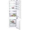 Bosch Serie 6 270 Litre 80/20 Split Integrated Built-in Fridge Freezer KIS87AFE0G The bottom freezer with VitaFresh plus drawer: keeps your fruit and vegetables fresher for longer. Lots of space for XXL frozen goods with the BigBox drawer. An extra-deep frozen food drawer for practical stacking of frozen foods container or large frozen items like gateaux or pizzas. No matter whether you have to cater for a child’s birthday or freeze a wedding cake – in the BigBox you will find enough space for large frozen goods. Effortless storage solutions The divided vario shelf in safety glass can be effortlessly adjusted for putting items into the fridge and removing them. It is ideal for larger items, like upright bottles or bowls, giving you complete flexibility when you need more space. The other half of the shelf is particularly convenient as it smoothly slides under the first. Egg rack The egg rack keeps your eggs safe and prevents them from cracking. Full flexibility in the freezer area You can remove all the safety glass shelves in the freezer area really easily to create more space – to store a multi-level cake, for example, or a whole turkey. Large foods such as a family-sized pizza can be stacked on the glass surfaces without any problem. Insert and remove items at the turn of a hand The shatterproof, frameless glass shelves are particularly easy to use, thanks to the smooth pull-out mechanism. And they also give you a clear view of your food at any time. Alarm The alarm system signals a sound or light when the door is not closed properly SuperFreeze Automatic super freezing: optimal for freezing smaller food loads faster whilst protecting your frozen items from defrosting, thanks to the detection of temperature increase and the automatic decrease of temperature. Defrosting less often saves work and is energy-efficient Constantly having to defrost your conventional freezer not only takes up a lot of your time, but takes up your energy too. LowFrost reduces the amount of ice formation in your freezer to eliminate the need for frequent defrosting. If defrosting should ever be necessary, our freezers with LowFrost feature a practical vent at the base of the appliance for a quick, fuss-free fix. Choose the freezer that looks after you, and itself. Two separate cooling circuits are more convenient and save energy 2 separate cooling circuits, which allow you to control the chilling and freezer compartments independently. Easy-to-use electronic controls allow you to adjust the temperatures individually and prevents odour transfer. The fridge that knows how to keep its cool Activate the SuperCooling function before you go shopping lowers the temperature for a short period, so your fresh shopping is kept at the right temperature. The temperature is lowered by pushing a button (2°C at the lowest). To prevent unnecessary power consumption, the function automatically switches back after approximately 6 hours. FreshSense: perfect storage climate Thanks to the optimum storage conditions, your food preserves an ideal consistency; ice cream, for instance, is neither too soft nor too hard. A constant temperature in the fridge interior is a decisive factor in achieving more freshness and flavour. FreshSense sensors constantly monitor and control the ambient, fridge and freezer temperature. A constant temperature inside the fridge, independent of the outer temperature, is the result. Keeps the contents of your fridge in the spotlight LED lights bring a completely new lighting concept to fridges, guaranteeing even, glare-free interior illumination. LED lights use less electricity than conventional fridge lights and last an (appliance) lifetime. Key Features LED lights bring a completely new lighting concept to fridges VarioZone: more flexibility due to variable-use glass shelves and drawers in the freezer compartment Automatic super freezing: for freezing smaller food loads faster whilst protecting your frozen items from defrosting, thanks to the detection of temperature increase BigBox frozen food drawer: for stacking storage containers or for large frozen food items EasyAccess Shelf: retractable glass shelf for convenient loading and unloading and a perfect view 270 Litres of usable space, 209 litres in the fridge and 61 litres in the freezer 80/20 Split with reversible door hinges and door-on-door assembly 2 year warranty for peace of mind Dimensions (mm): H1772 x W558 x D545 5 Fridge shelves, 1 VitaFresh fruit and veg drawer, 2 freezer drawers Performance and Consumption Energy consumption: 225 kWh kWh/yr. Total net capacity: 270 litres Noise level dB(A) re 1 pW: 36 Climate class SN-T (suitable for ambient temperatures between 10 to 43°C) Functions Bright interior LED fridge light Design features Electronic control for fridge and freezer with LED display FreshSense –