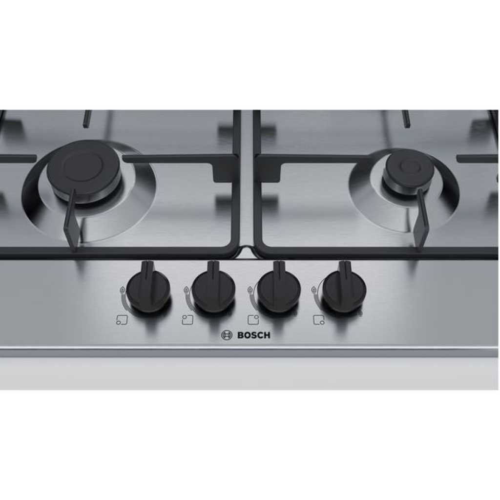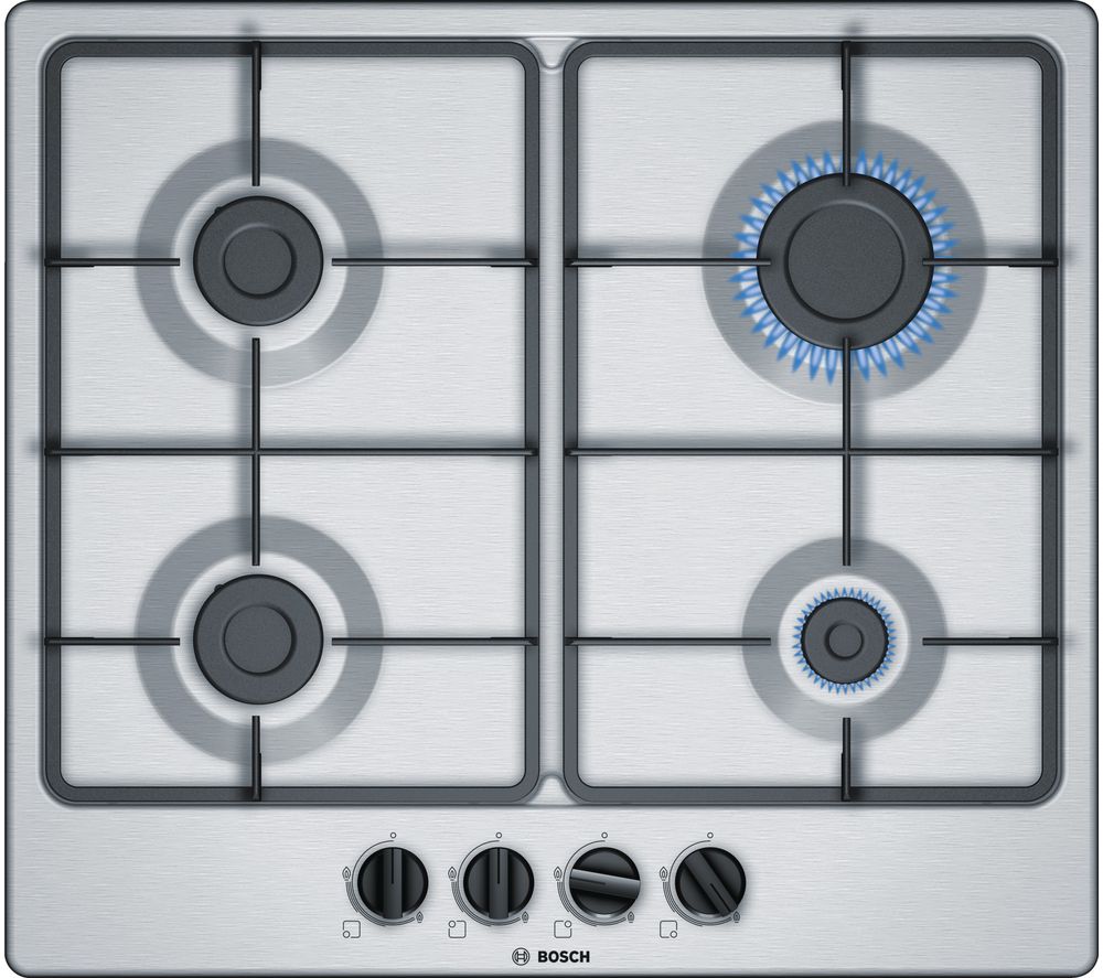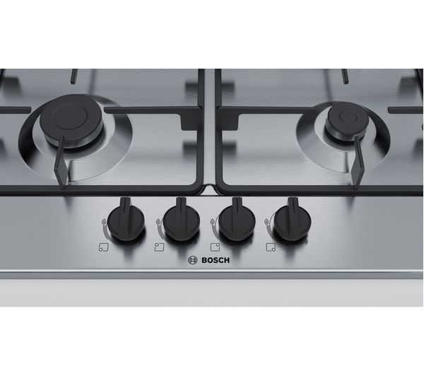 BOSCH 60X60cm Serie 4 PGP6B5B60 4 Gas Burners Gas Hob – Stainless Steel Top features: – Seamless cooking with front mounted controls – Cast iron finish pan supports ensure safety and stability – Sleek stainless steel design completes the package Seamless cooking with front mounted controls Cook with ease with the Bosch Serie 4 PGP6B5B60 Gas Hob . Front mounted controls conveniently connect you to four cooking zones, with three power settings giving you the options you need – the front right hob heats to 1 kW, both the front left and the back left hobs heat to 1.75 kW and the back right hob heats to a powerful 3 kW, perfect for larger dishes. Cast iron pan supports Strong, sturdy cast iron supports, complete with rubber feet, give you the stability you need for all your cooking endeavours. Safety features include a flame failure safety device that will automatically stop the gas if the flame blows out. Sleek stainless steel design With an attractive stainless steel finish, this cooker will look great in your kitchen, as well as being easy to clean. _____________________________________________________________ GAS INSTALLATION: This product requires installation by a qualified gas safe engineer, such as one of our Team Knowhow experts. ELECTRICAL INSTALLATION: This product can be plugged into a standard 13 Amp socket. Key Features: BOSCH 60X60cm Serie 4 PGP6B5B60 Gas Hob – Stainless Steel Width: 60 cm 4 burners Cast-iron pan supports Manual ignition Professional installation required