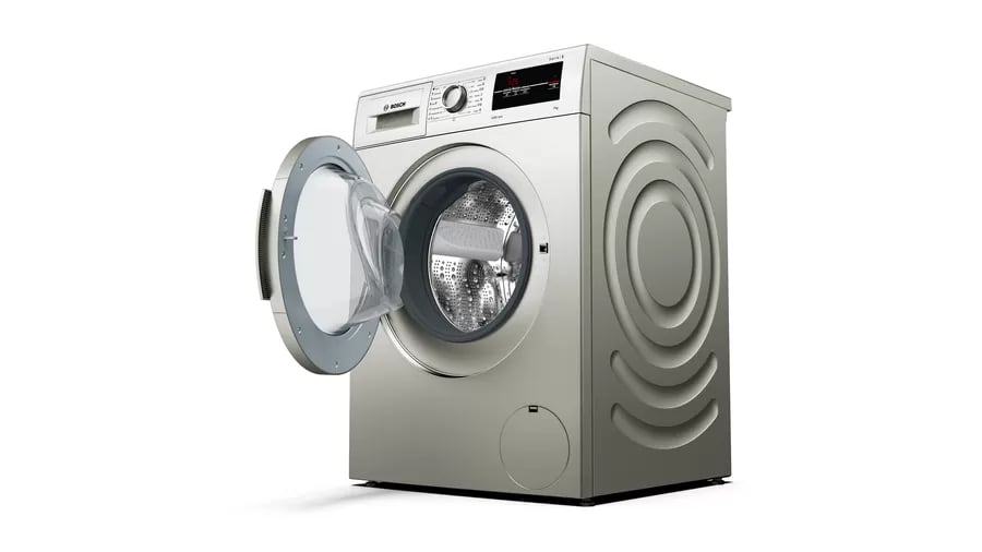Bosch 8KG WAJ2018SKE Front Load Washing Machine 8KG – Silver Guaranteed to be long-lasting and extraordinarily quiet. The level of noise in your house can often make or break your day. Especially when you want to have dinner in peace and quiet with your family. Bosch’s EcoSilence Drive is so quiet, that sometimes you may forget that your washing machine is on. Equipped with a brushless, energy-efficient motor that optimally reduces friction noise and is quiet in operation with an especially long life and with a 10-year warranty. Outstanding washing results thanks to optimum water distribution This drum thinks for itself: The droplet-shaped structure and the size of the paddles ensure faster and more even water distribution – producing outstanding washing results. The whisper quiet washing machine. The innovative AntiVibration design of the side walls is not only eye catching: the system also provides more stability and reduces vibration. The enhanced insulation also regulates noise levels, making Bosch washing machines very quiet, even during the spin cycle. Never miss an item again, with Reload. Forgot a kid’s sock, your t-shirt,..? Nevermind. When was the last time, you just loaded the washing machine, started the wash cycle and then realised that you forgot a kid’s sock or a t-shirt? The reload function in our washing machines lets you simply add missed out clothes or remove clothes even during a wash cycle*. Just pause the running cycle and open the door, to simply reload your forgotten items into the drum and continue the wash. (*Reloading is not possible when water temperature is higher than 50°C or when water level is too high.)