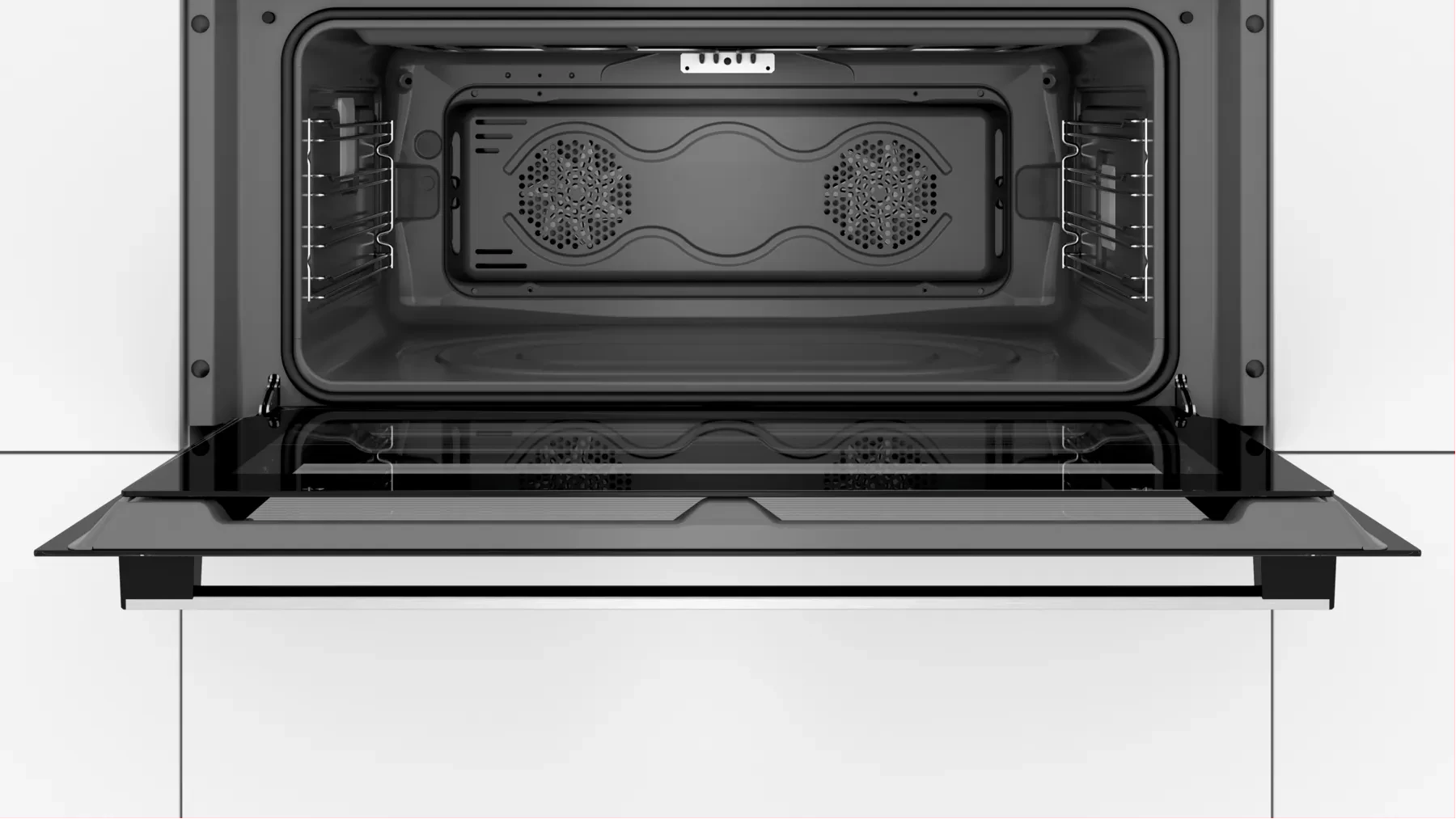 Key Features: Bosch 90cm Built In Electric Oven, VBC514CR0 (85 Litres, 90x48cm). The 90cm built-in oven: offers you the enough space for larger dishes Hotair: perfect results on two levels thanks to optimal distribution of heat LED display control, red: easy-to-use thanks to the time functions Electronic clock, Elongated halogen light, – Integral cooling fan, Extra large capacity oven with grey enamel