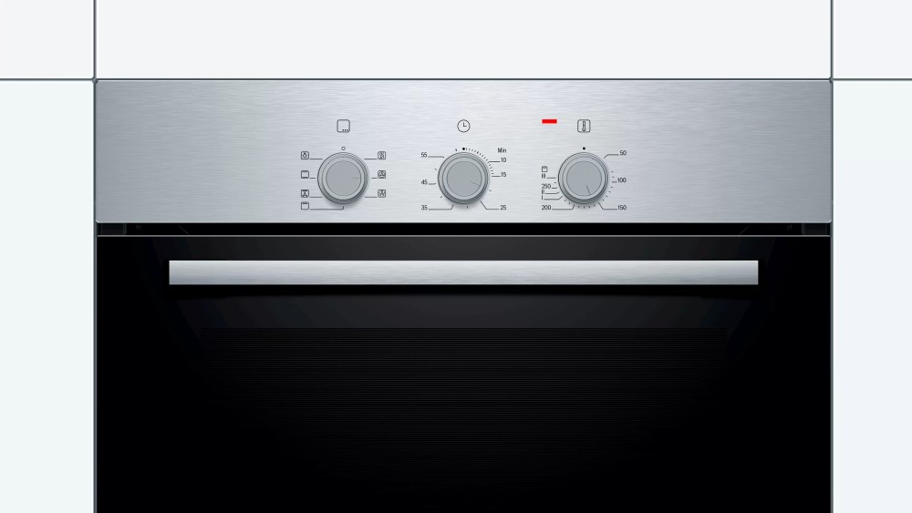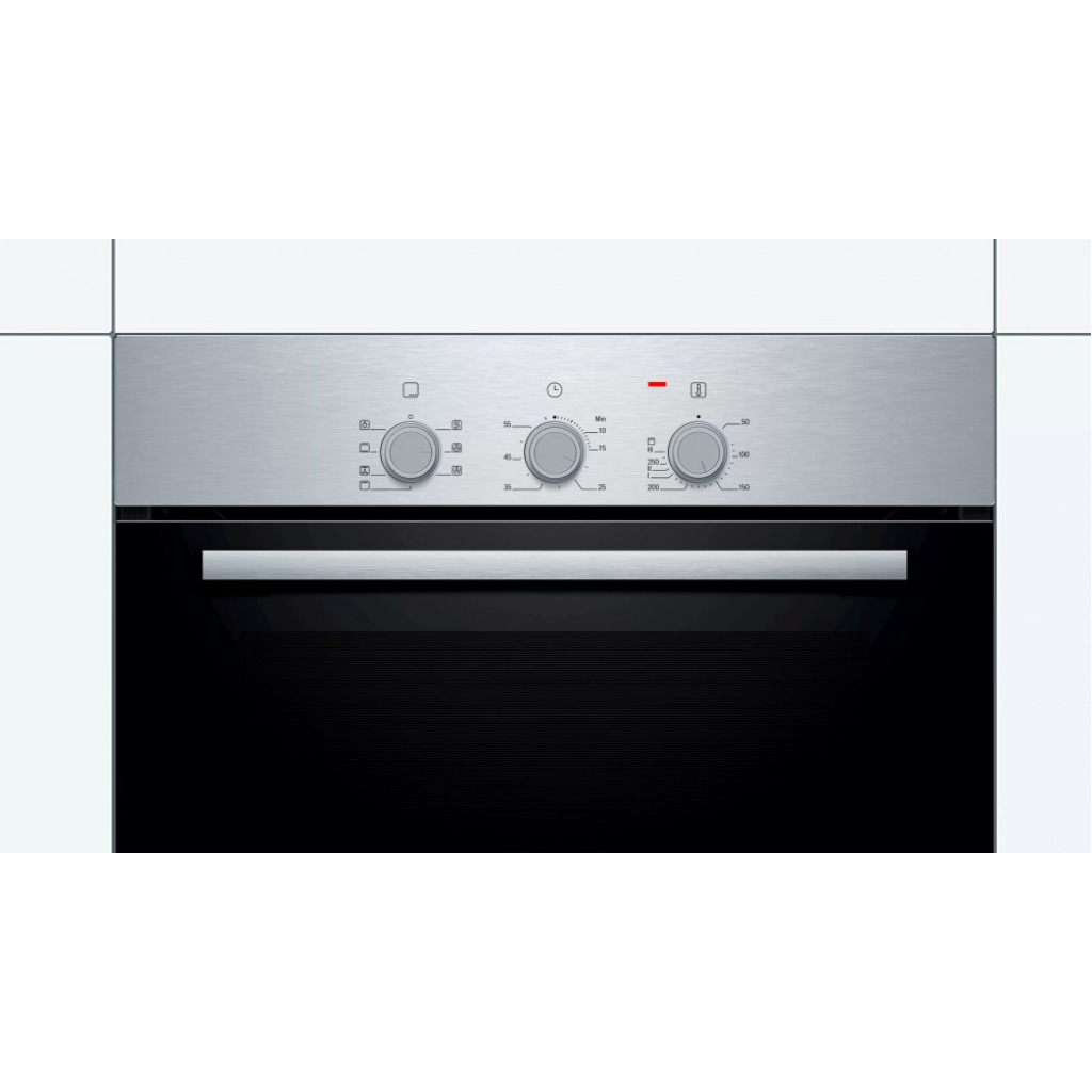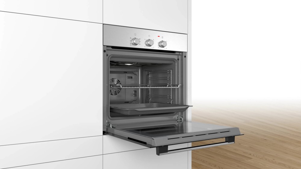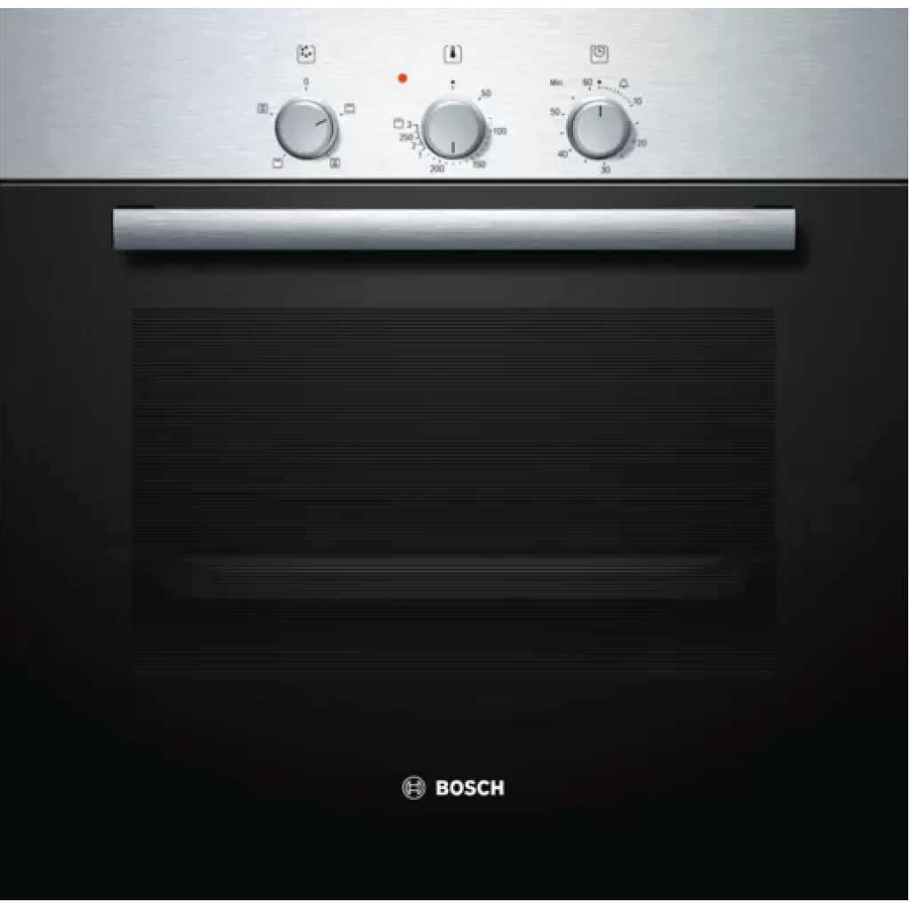 Bosch HBN211E2M 66L 4 Function Built-in Oven, 60cm – Stainless Steel Select and Cook The Bosch built in single electric oven is very easy to operate and lets you select the power intensities at which you want your meal to be cooked or heated. Choose from the four heating modes, namely hot air grilling, top and bottom heat, circulating air, full width variable grill to get that desired meal cooked to perfection. Power Packed This oven delivers a powerful output that is ideal for high performance to give you great results while preparing your favorite foods. The oven has a capacity of 60L that saves the need for cooking in multiple batches. The enamelled cavity offers great ease in cleaning this device after each use. It flaunts dimensions of 595 x 595 x 548mm that make it the perfect space saver for small kitchens with limited surface space. Brand Name ‎Bosch Model Info ‎HBN211E2M Product Dimensions ‎65 x 68 x 67.5 cm; 31 Kilograms Capacity ‎67 Liters Annual Energy Consumption ‎207 Kilowatt Hours Per Year Installation Type ‎Built-In Part Number ‎HBN211E2M Oven Cooking Mode ‎Radiant Burner type ‎Stainless Steel Color ‎Silver Voltage ‎240 Volts Wattage ‎2500 watts Fuel type ‎Electric Included Components ‎NO Batteries Required? ‎No Item Weight ‎31 kg Key Features: Bosch HBN211E2M 66L 4 Function Built-in Oven, 60cm – Stainless Steel Heating system multifunction (4 heating modes: hot air grilling, Top/bottom heat, Circulating Air, Full-width variable grill) Temperature range 50°C – 270°C Mechanical timer Cavity volume: 66L Interior lighting Enamelled cavity (brown) Oven cavity with removable rack supports 1 x universal pan, 1 x combination grid Integral cooling fan Removable oven door for easy cleaning Total connected load electric: 2.8 KW Number of cavities: 1 Heat source: electrical Stainless steel