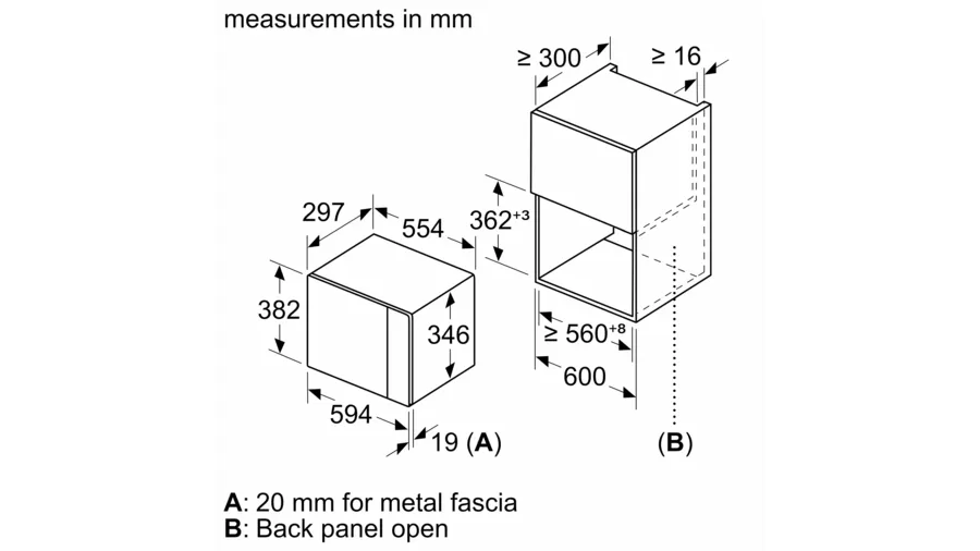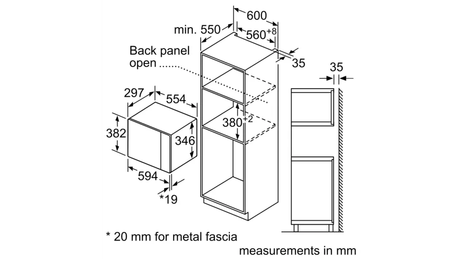 Bosch Serie 4 Built-in 20 – Litres Microwave Oven With Grill 60 x 38 cm BEL523MS0B – Stainless Steel Cook all your favourite dishes to perfection with this built-in microwave from Bosch. With its 20 litre capacity, it’s a great choice for small households, and thanks to its 800 Watt output, you’ll never have to wait long for it to warm tasty snacks either. It has 8 fantastic AutoPilot programmes which automatically set the perfect time and temperature for a range of dishes. This means that you’ll achieve incredible results with every meal – from succulent joints of meat to light and fluffy desserts. It has a handy grill too, which lets you prepare deliciously crispy bacon for a tasty BLT with complete ease. This model has also been designed to fit in an eye level cabinet. Dimensions (cm) (H)38.2 x (W)59.4 x (D)31.7 Capacity 20 Litres Control Type Dial / Touch Number of Power Levels 5 Maximum Microwave Power 800 Watt Key Features: Bosch Serie 4 Built-in 20 – Litres Microwave Oven With Grill 60 x 38 cm BEL523MS0B – Stainless Steel 20 litre capacity – great for small households 800 Watt power output – for fast cooking 8 automatic programmes to cook food to perfection Grill function is perfect for quick snacks Dimensions (cm) H38.2 x W59.4 x D31.7