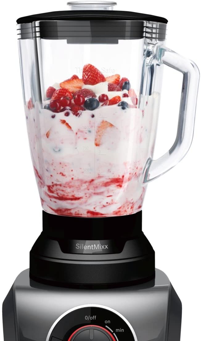 Key Features: Bosch SilentMixx MMB43G3BGB Blender 700 W, 1.5 Litre – Black Enjoy the quiet but powerful technology, thanks to its noise reduction system, the SilentMixx performs so quietly Achieve easy and safe mixing of hot soups and ice-cold beverages with help of the thick-walled thermosafe glass Ideal results achieved every time with the 700 W motor: Powerful for every application Get the results you want at the touch of a button thanks to two individual automatic programs Convenient to clean as the easy klick knife can be removed very easily