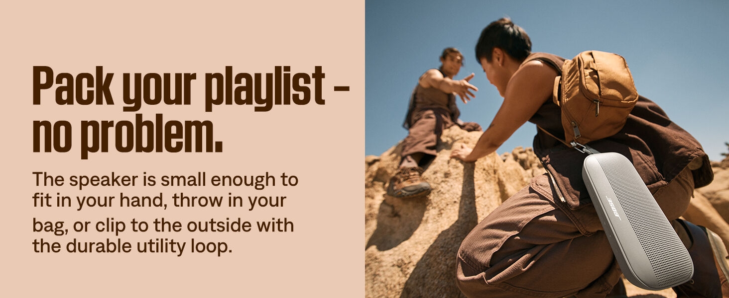 MUSIC CALLS: The Bose SoundLink Flex Portable Bluetooth Speaker (2nd Gen) packs big, bold sound in a small, packable size that’s perfect for sharing tunes and good times anywhere on the planet SOUND THAT TAKES YOU PLACES: Take advantage of the surprisingly powerful performance of this Bose portable wireless speaker with its clear, balanced, high-fidelity audio and deep bass that is easy to take with you PERFECTLY PORTABLE, WITH BATTERY LIFE TO MATCH: This Bose Bluetooth portable speaker is small enough to fit in your hand or clip onto a bag using the utility loop, plus it has up to 12 hours of battery life* so you can focus on the fun TOSS IT, DROP IT, IT’S ALL GOOD: This IP67 rated Bose portable Bluetooth speaker is waterproof and dustproof and is wrapped in a durable, silicone-wrapped body to withstand drops, shocks and rust STAY CONNECTED WITH ADVANCED BLUETOOTH 5.3: This outdoor speaker uses Bluetooth 5.3 to ensure a continuous connection to your device from up to 9 metres away and can pair to multiple devices at once using multipoint technology STEREO ON THE GO: Amp up the adventure with more sound when you link two compatible Bose speakers, choose Stereo Mode for left and right channels, or go for Party Mode for even bigger, bolder sound PLAYS FROM ANY POSITION: Stand it up, lay it back, or hang it upside down, this small portable Bluetooth speaker uses PositionIQ technology to sense the speaker orientation and automatically adjusts for the best sound possible Key Features: MUSIC CALLS: The Bose SoundLink Flex Portable Bluetooth Speaker (2nd Gen) packs big, bold sound in a small, packable size that’s perfect for sharing tunes and good times anywhere on the planet SOUND THAT TAKES YOU PLACES: Take advantage of the surprisingly powerful performance of this Bose portable wireless speaker with its clear, balanced, high-fidelity audio and deep bass that is easy to take with you PERFECTLY PORTABLE, WITH BATTERY LIFE TO MATCH: This Bose Bluetooth portable speaker is small enough to fit in your hand or clip onto a bag using the utility loop, plus it has up to 12 hours of battery life* so you can focus on the fun