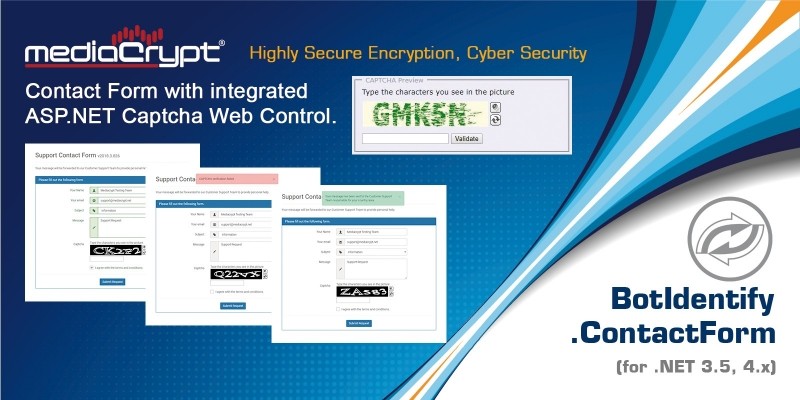 BotIdentify ContactForm .NET. Contact Form with integrated ASP.NET Captcha Web Control.