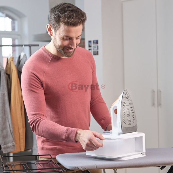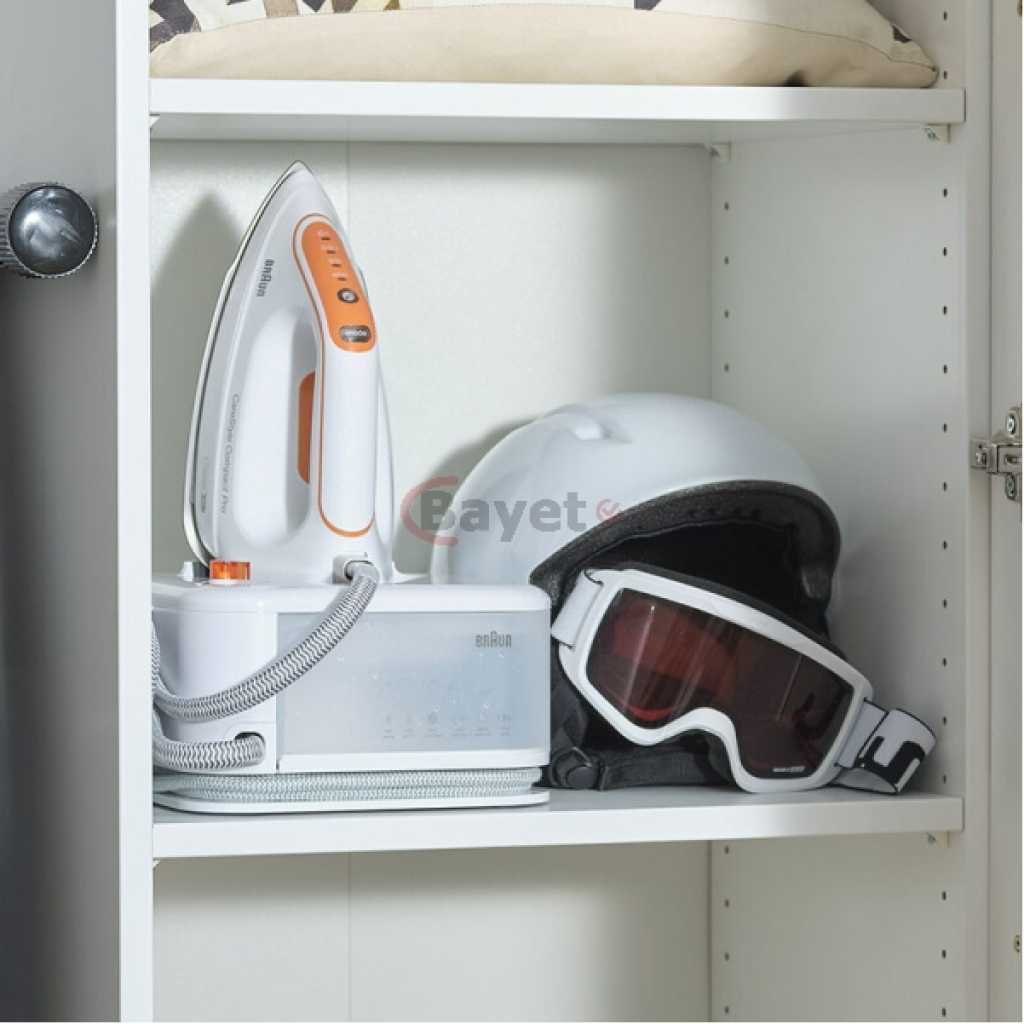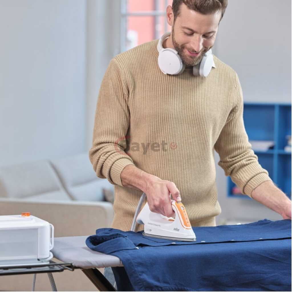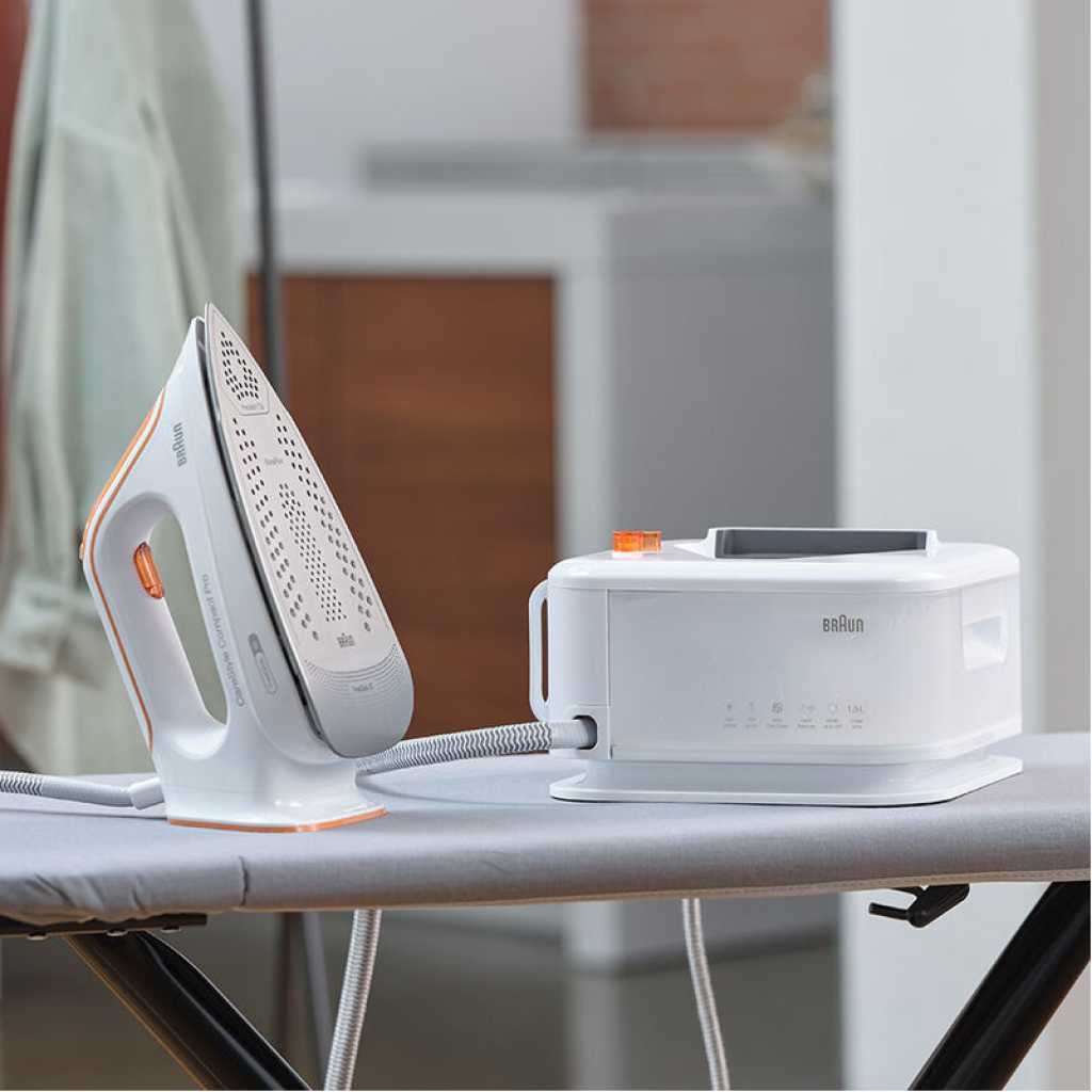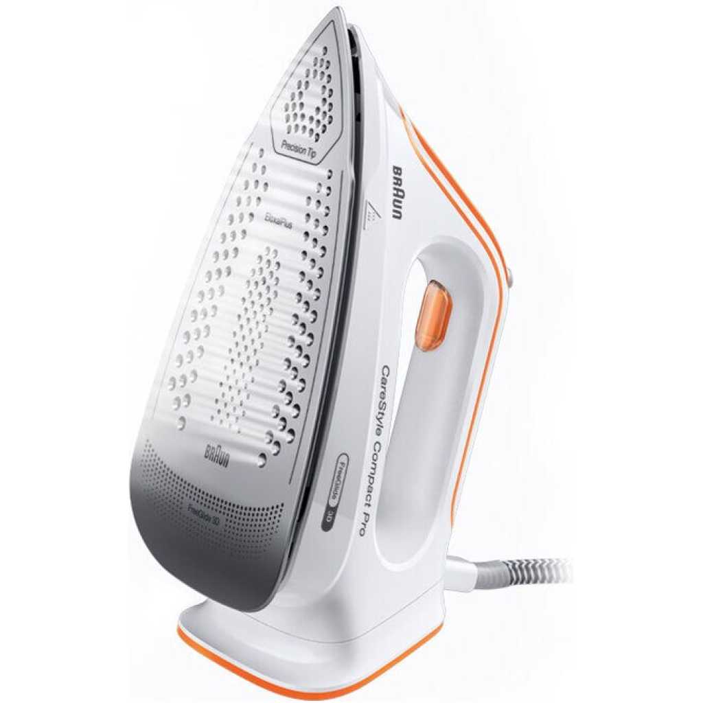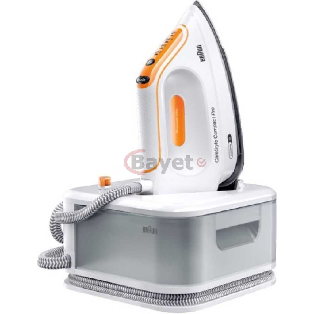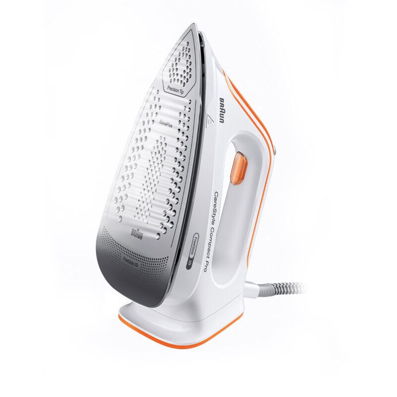 Braun CareStyle Compact Pro Steam Generator Iron IS 2561 | FreeGlide 3D Soleplate | 16 Bar | 2400W. FREEGLIDE 3D IRON SOLE: The uniquely rounded design guarantees 360° gliding over any fabric, over any obstacle – even backwards. No more snagging on buttons and pockets Powerful: thanks to a pump pressure of 6 bar and a steam boost of 400 g/min, the fine steam can completely penetrate the fabrics of your clothes and thus smooth even the deepest wrinkles ICARE TECHNOLOGY: The smart iCare setting ensures the protection of all clothing made of cotton, silk, wool and polyester without compromising on results Eco mode: the energy-saving mode is suitable for delicate fabrics such as silk, wool or synthetics Compact design for space-saving storage and easy handling. 1.5 litre tank that allows you to iron for up to 1 hour without having to refill it Key Features: Braun CareStyle Compact Pro Steam Generator Iron IS 2561 | FreeGlide 3D Soleplate | 16 Bar | 2400W. FREEGLIDE 3D IRON SOLE: The uniquely rounded design guarantees 360° gliding over any fabric, over any obstacle – even backwards. No more snagging on buttons and pockets Powerful: thanks to a pump pressure of 6 bar and a steam boost of 400 g/min, the fine steam can completely penetrate the fabrics of your clothes and thus smooth even the deepest wrinkles ICARE TECHNOLOGY: The smart iCare setting ensures the protection of all clothing made of cotton, silk, wool and polyester without compromising on results Eco mode: the energy-saving mode is suitable for delicate fabrics such as silk, wool or synthetics Compact design for space-saving storage and easy handling. 1.5 litre tank that allows you to iron for up to 1 hour without having to refill it