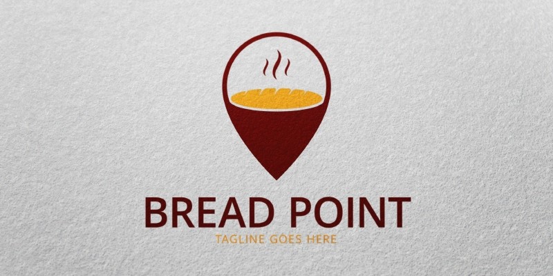 Bread Point - Logo Template. baguette, baker, bakery, bread, bun, confectionery, cuisine, food, locator, logo, pastry, pin, place, point, products, restaurant