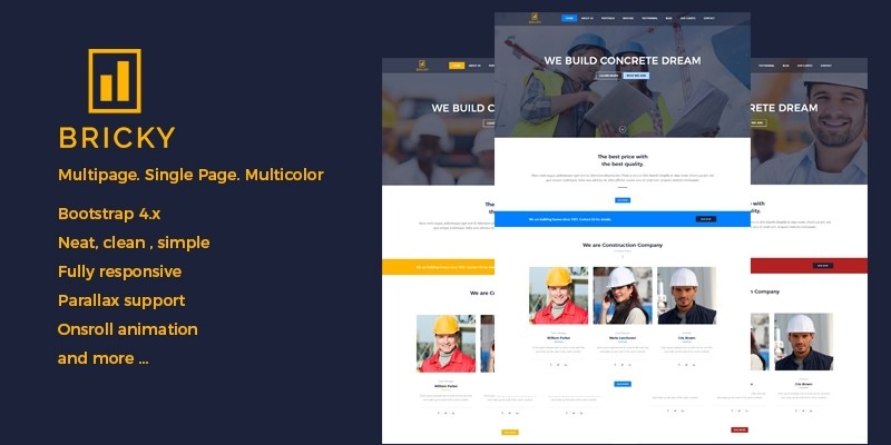Bricky - Construction Website Template. Multipage, One page, Multicolor Responsive HTML Template