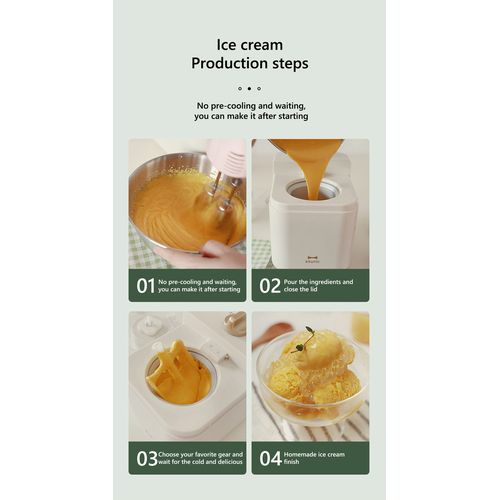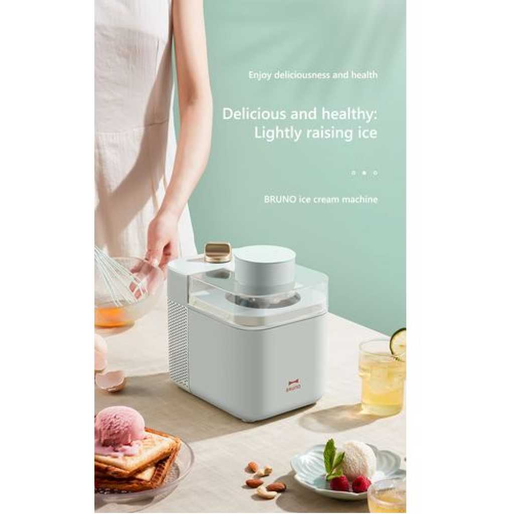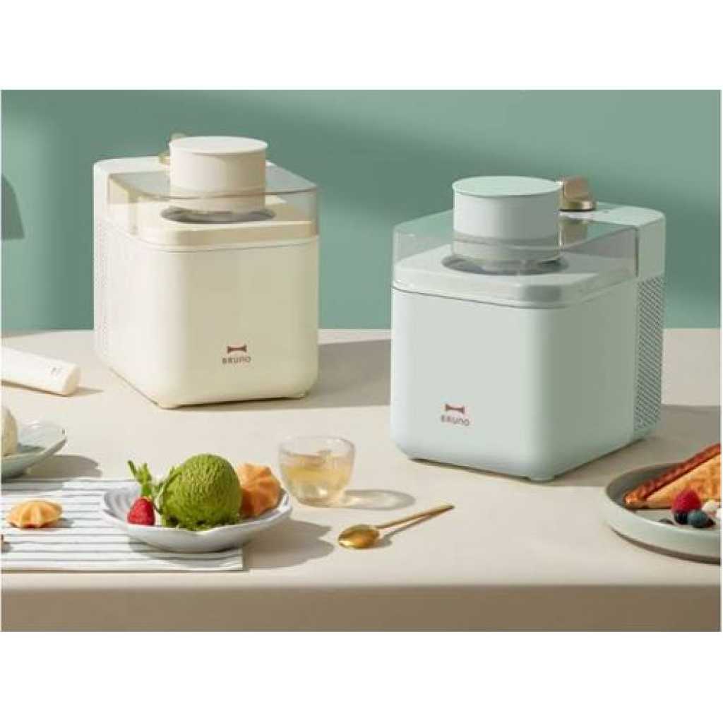 Bruno Ice Cream Machine Home Made Mini Fruit Smoothie Maker- Cream. General Description: Bruno, a brand that provides a wide range of household small appliances. It has sold more than millions of sales overseas and all its appliances are of very good quality. The brand is highly recommended and always come out with new design and idea to stand out from usual ordinary electric appliances. ✨ Specifications: Brand: Bruno Variants (Colour): Green, Cream Weight: 3kg Power: 60W Capacity: 500ml ✨ Features: ✎ Sorbet: the ice cream machine is equipped with a large-capacity filter, which can quickly absorb water and keep your hands dry. ✎ Ice cream maker machine: create slushia, frozen yogurt, or sorbet at home with the Bruno ice cream maker machine. this machine is equipped with advanced temperature control and an auto-off function to ensure safe and reliable use. ✎ Vintage style: the ice cream maker is made of high-quality stainless steel, which is durable and easy to clean. it can be used in homes, restaurants, bars, cafes, etc. ✎ No need to be refrigerated in advance. ✎ Automatic refrigeration without using an ice bucket. ✎ Avoid unwanted odor due to pre-cooling or an ice bucket, more hygienic. Key Features: Bruno Ice Cream Machine Home Made Mini Fruit Smoothie Maker- Cream. Capacity: 500ml Aluminum (food-graded materials) cooling bowl The high-quality plastic outer case Transparent lid with hole for filling ingredients On/Off button and standard plug Motor with left and right motion Anti-skid rubber on the bottom of the unit reversible thermostat built into the machine Unit Size: 20.3 (dia.) x 22cm Height of cooling bowl (cm): 13.8cm The volume of ice cream that can be made: is 500ml Materials of plastic housing: PP Materials of transparent lid: AS, ABS Visible length of cable with plug: 160cm Pre-cooling time of bowl for ice cream making: 12 Hours Boiling time of ice cream from mixing until well done: 20-40Mins Speed: 30 circle/ Mins Working power: 60W