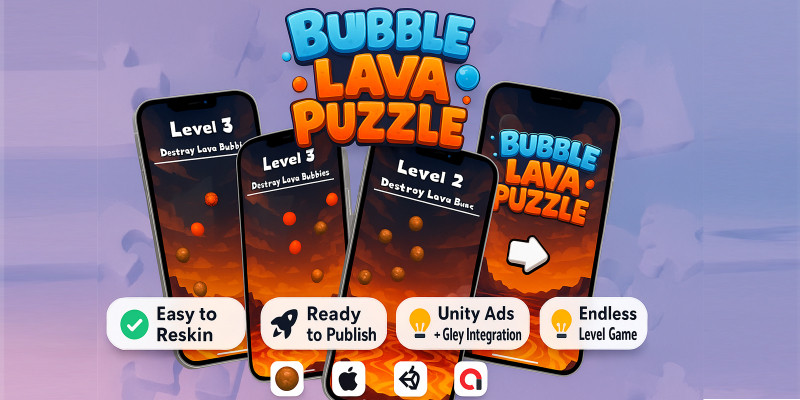 Bubble Lava Puzzle - Casual Mobile Unity Game. Puzzle 3D Unity Game Source Code! Perfect for mobile, this game is optimized for Android & iOS. Built in Unity, easy to reskin